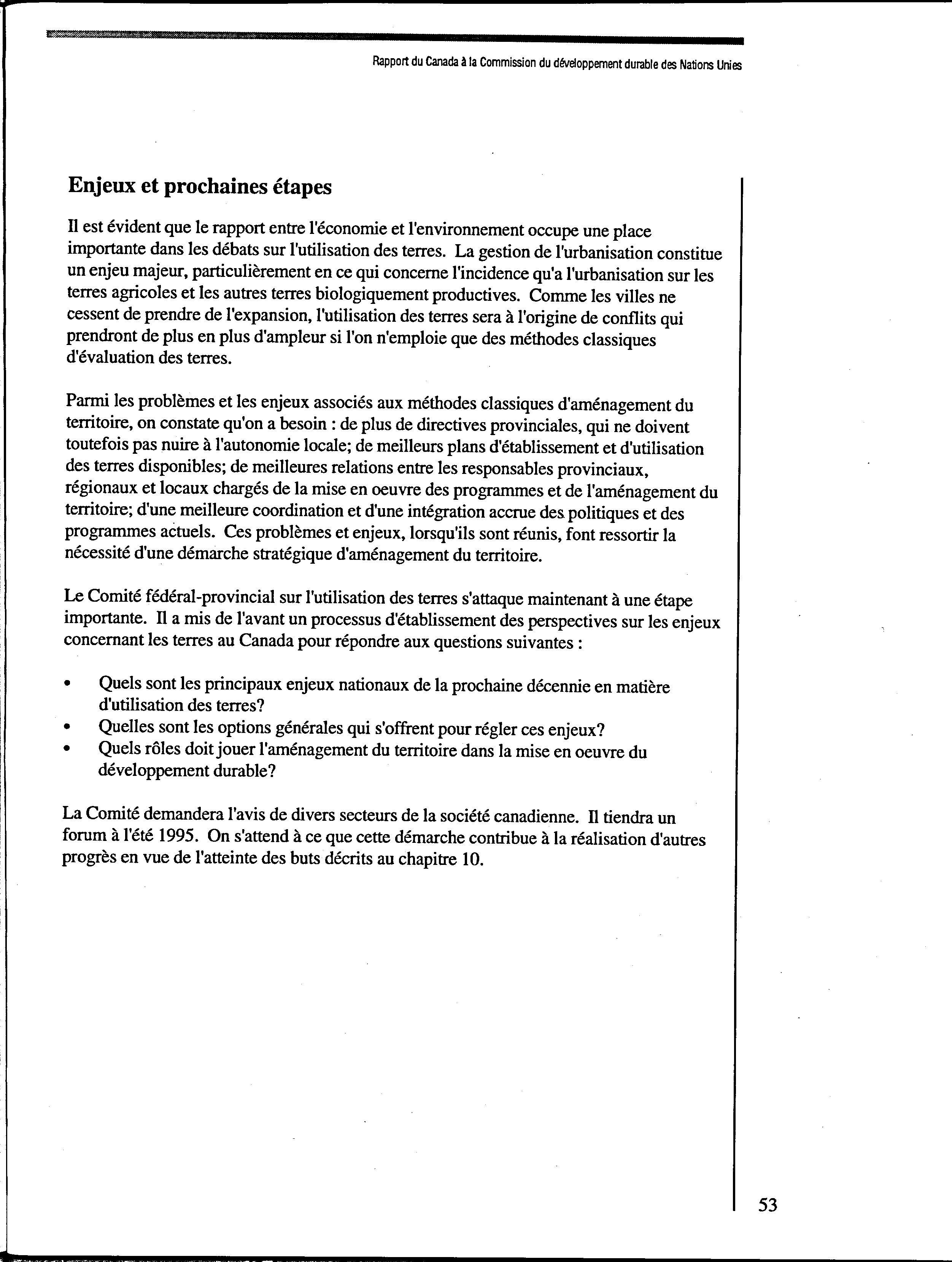 Report of Canada to the United Nations Commission on Sustainable Development. 3rd session 1995