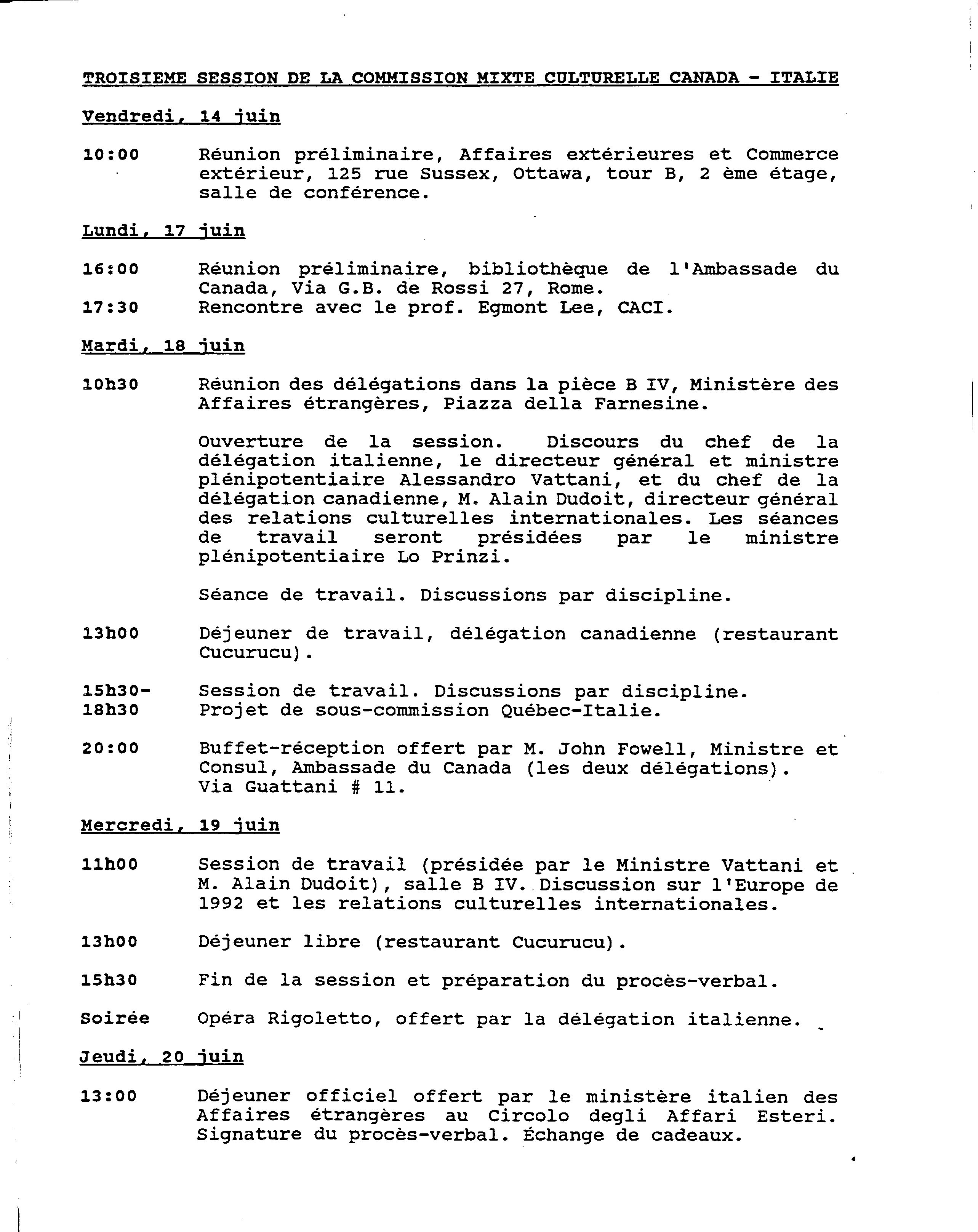Rapport - Commission mixte culturelle Canada/Italie, 3ème session, Rome, 18-20 juin 1991.