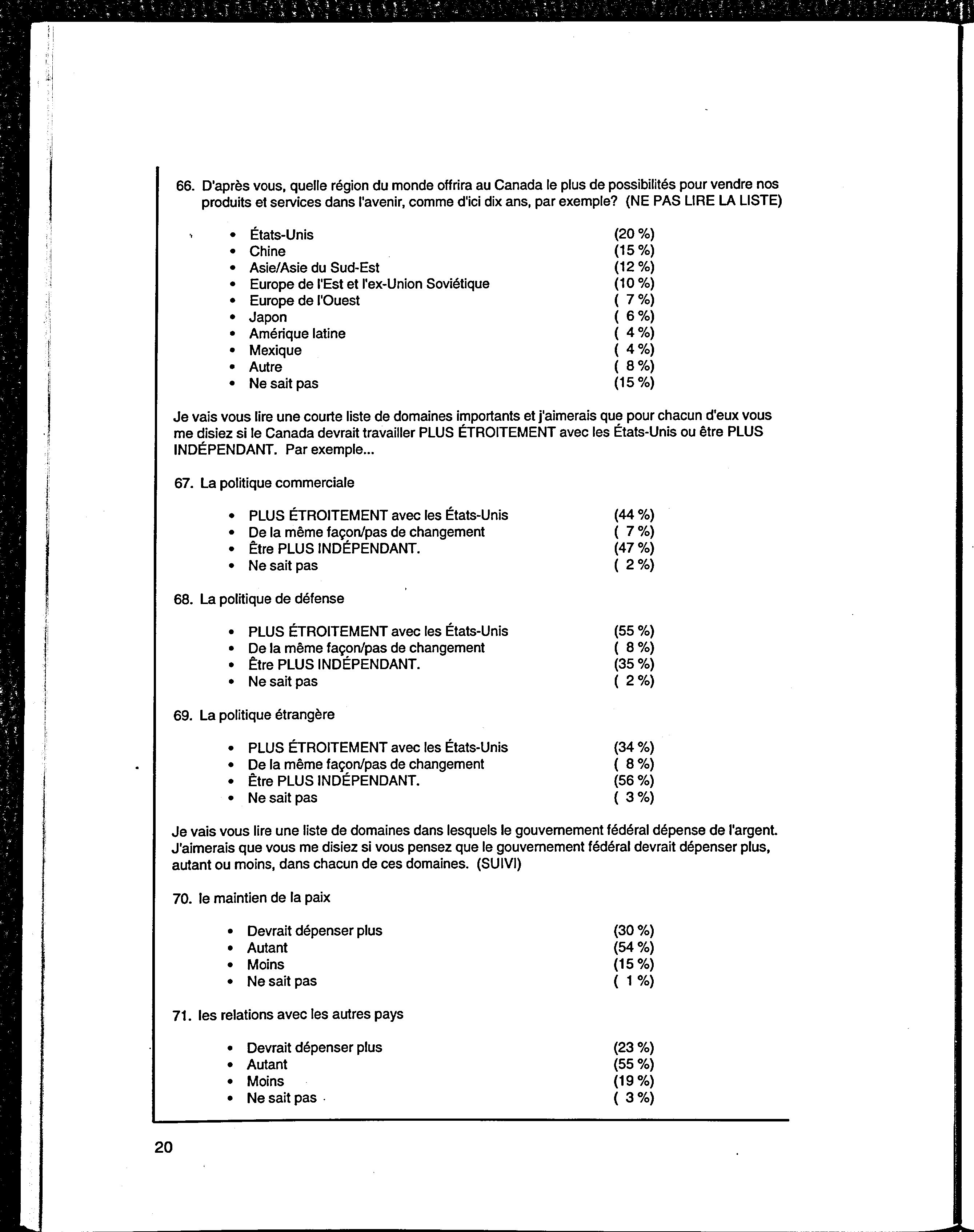 L'opinion publique canadienne sur la politique étrangère canadienne, la politique de défense et l'aide publique au développement 1995