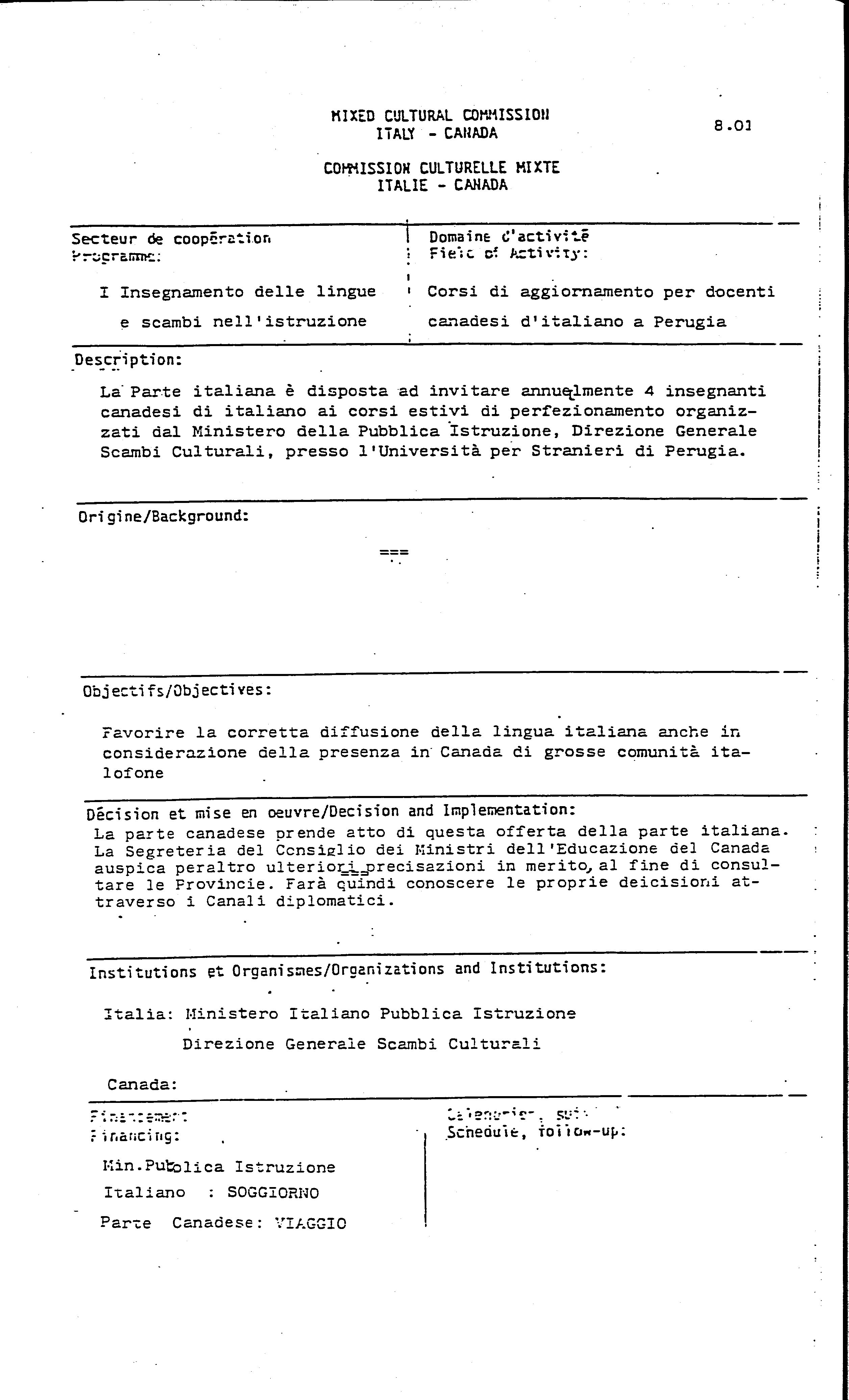 Commission mixte culturelle Italie - Canada (2ème : 1987 : Ottawa, Ontario)