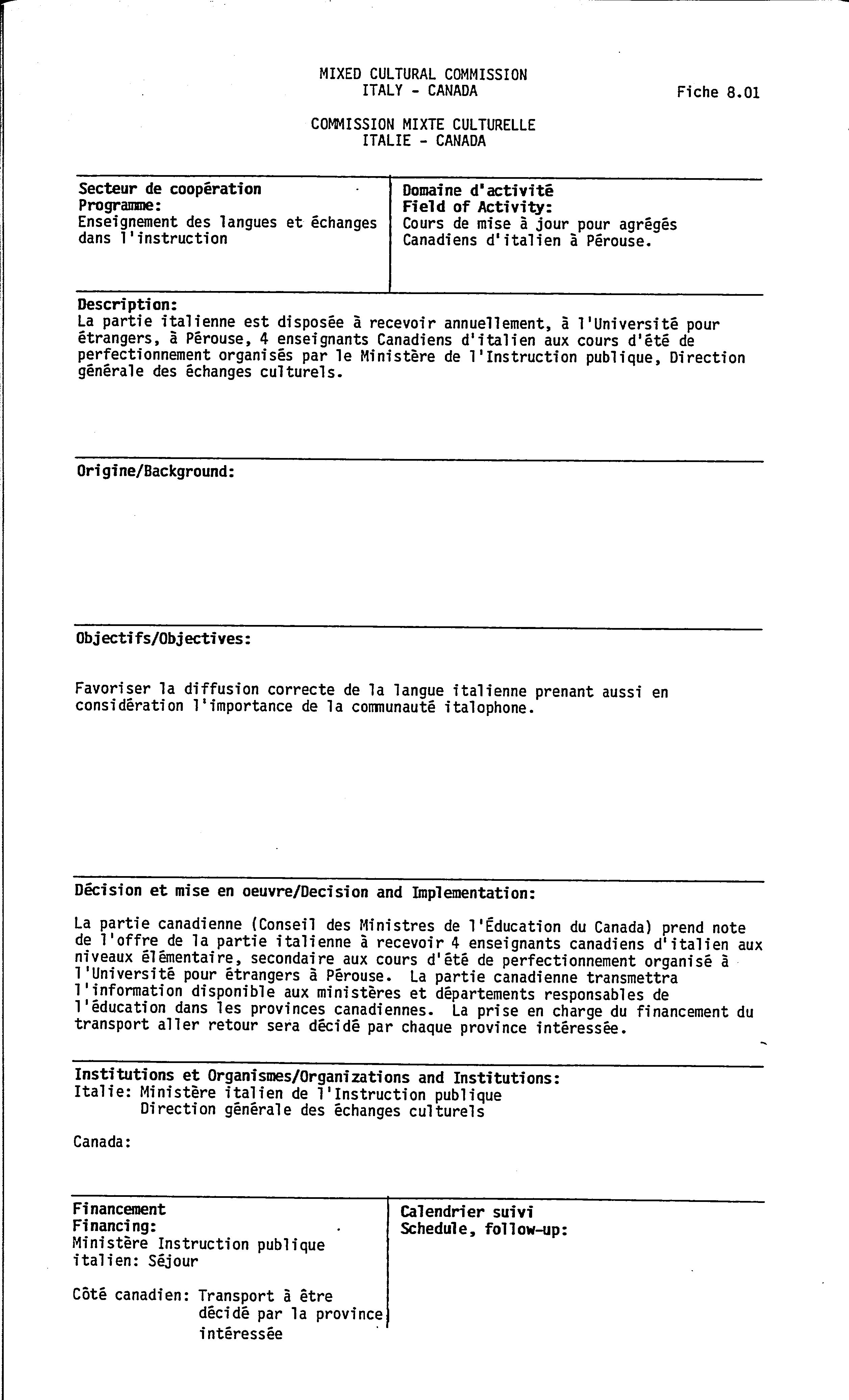 Commission mixte culturelle Italie - Canada (2ème : 1987 : Ottawa, Ontario)