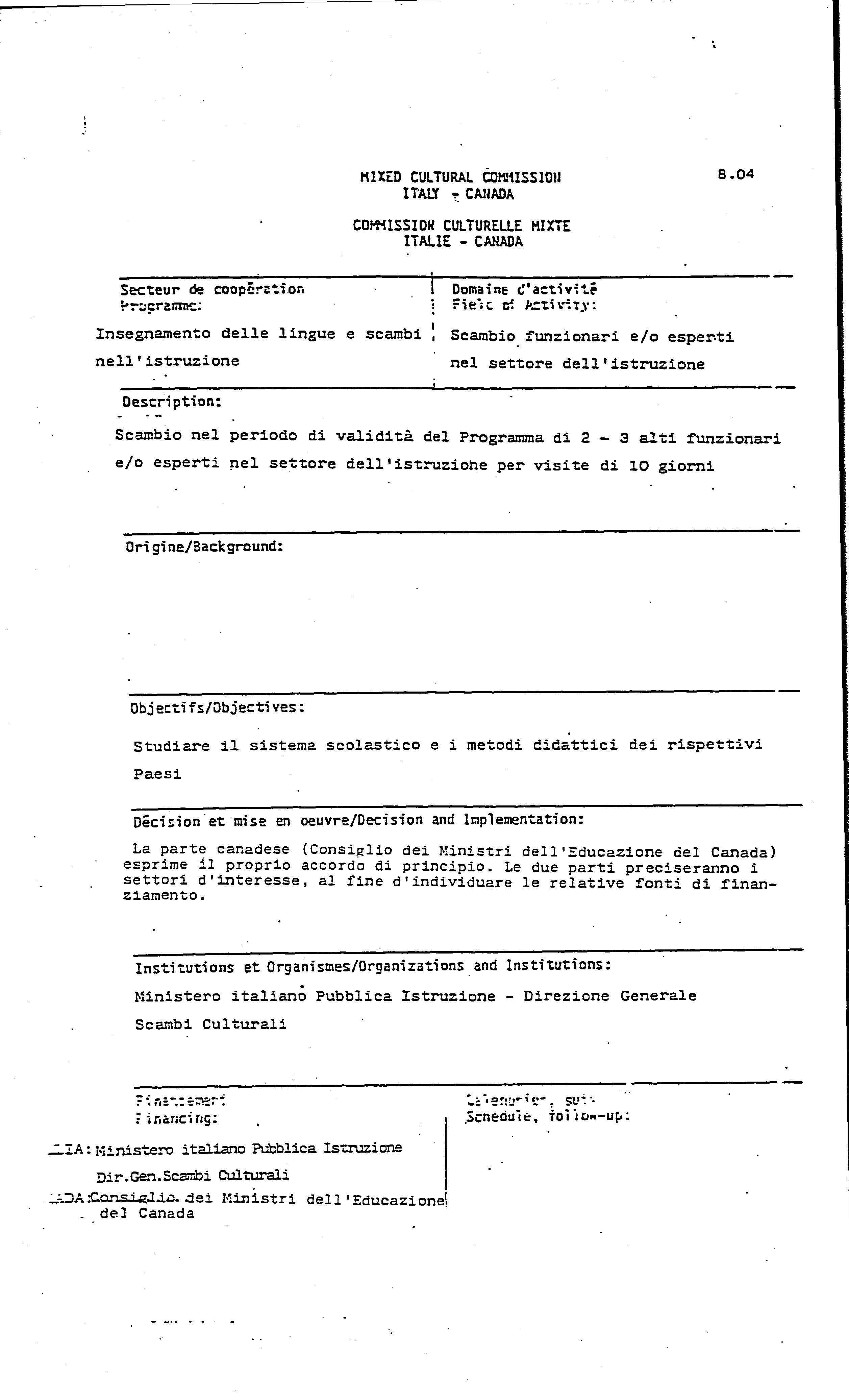 Commission mixte culturelle Italie - Canada (2ème : 1987 : Ottawa, Ontario)