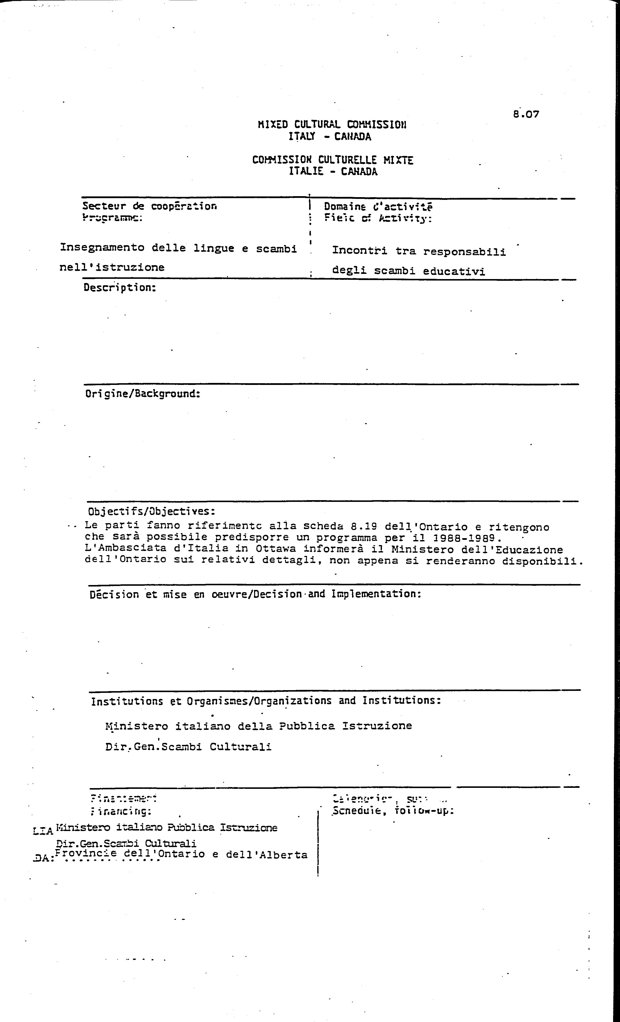 Commission mixte culturelle Italie - Canada (2ème : 1987 : Ottawa, Ontario)