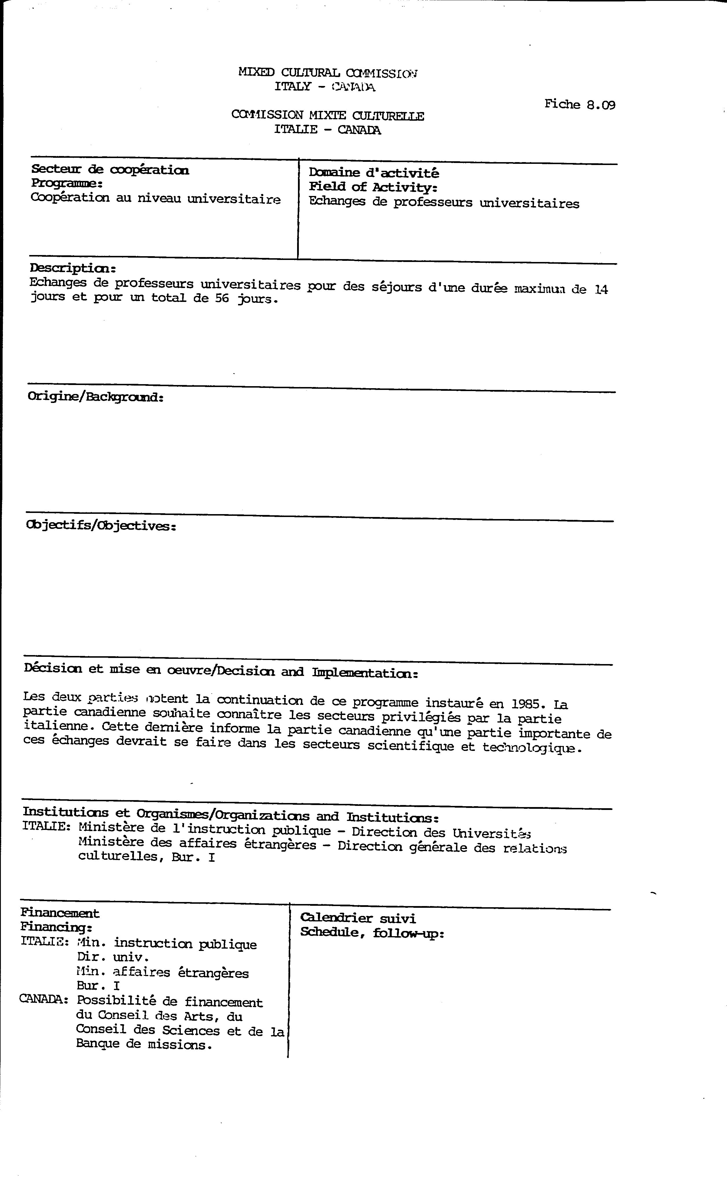 Commission mixte culturelle Italie - Canada (2ème : 1987 : Ottawa, Ontario)