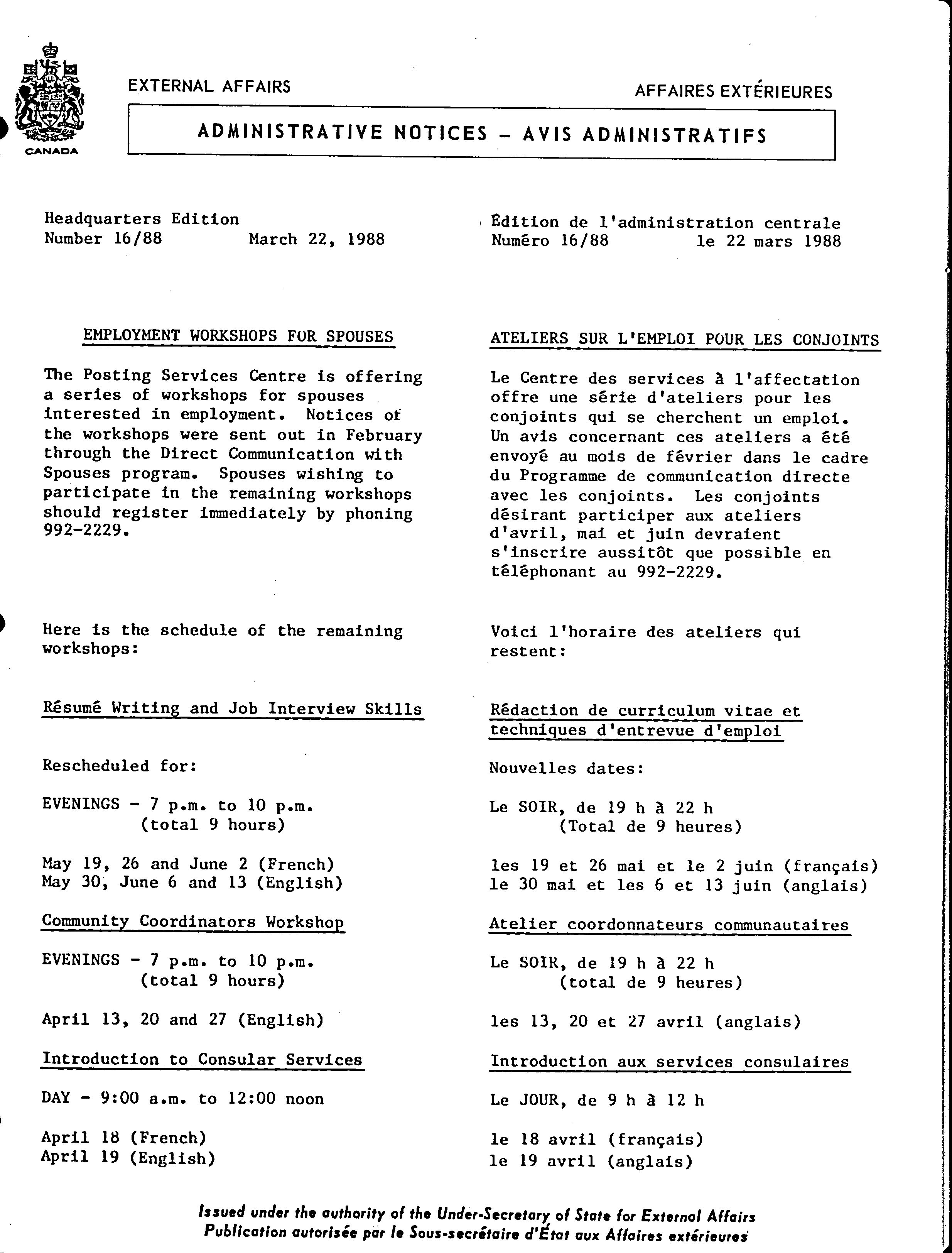 Administrative notices = Avis administratifs. No. 1, 1988-no. 61, 1988
