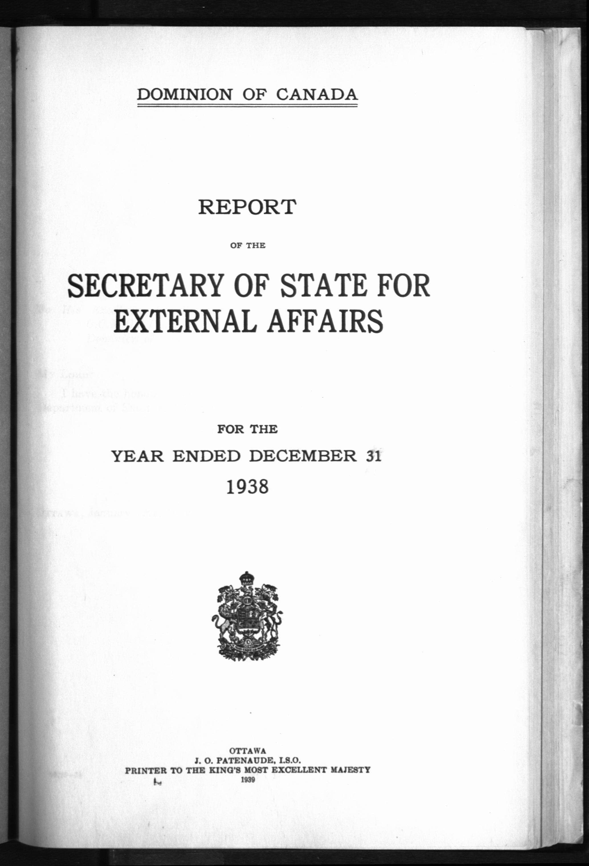 Report of the Secretary of State for External Affairs for the year ended March 31 .... 1930