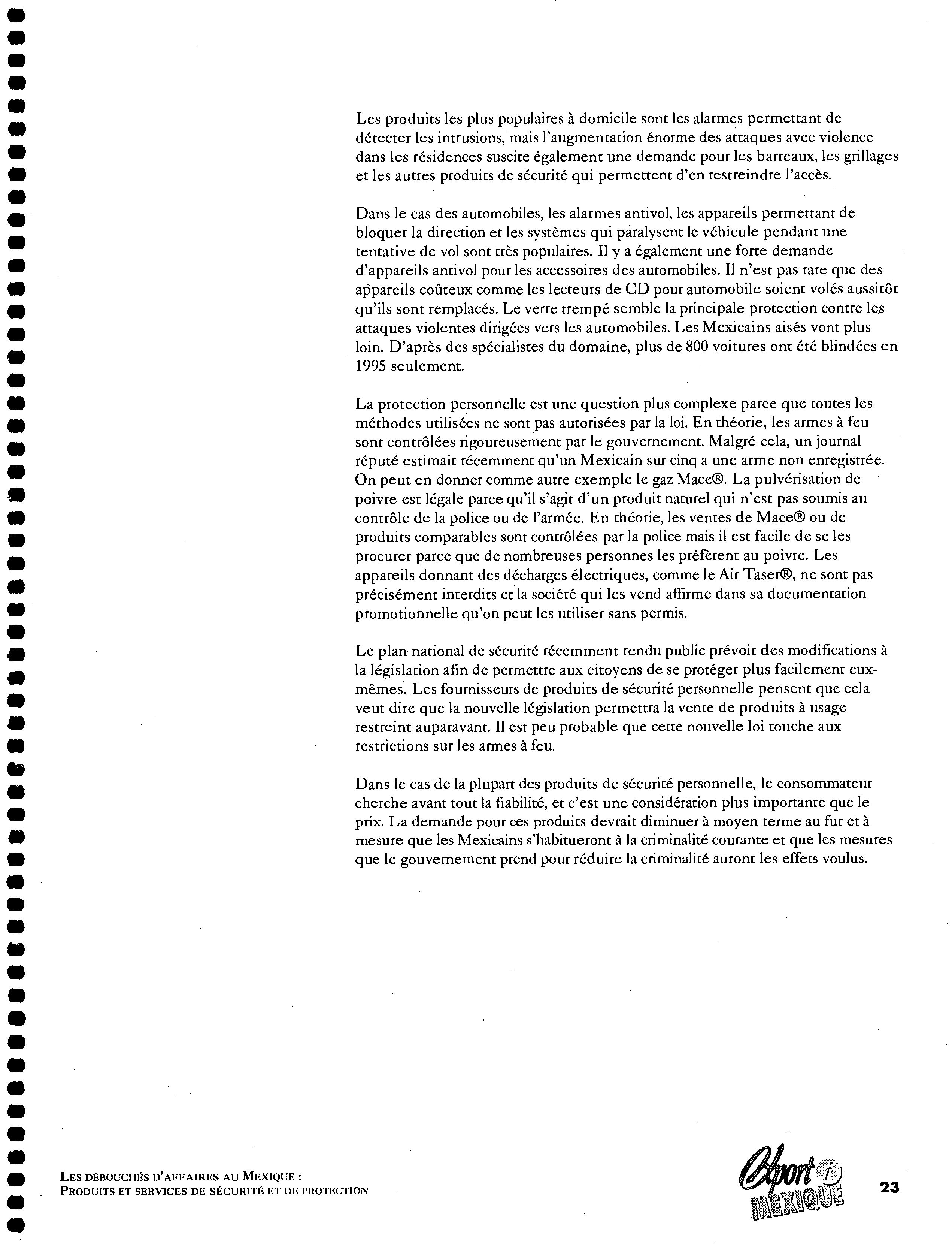 Les débouchés d'affaires au Mexique : produits et services de sécurité et de protection. - Adresse bibliographique