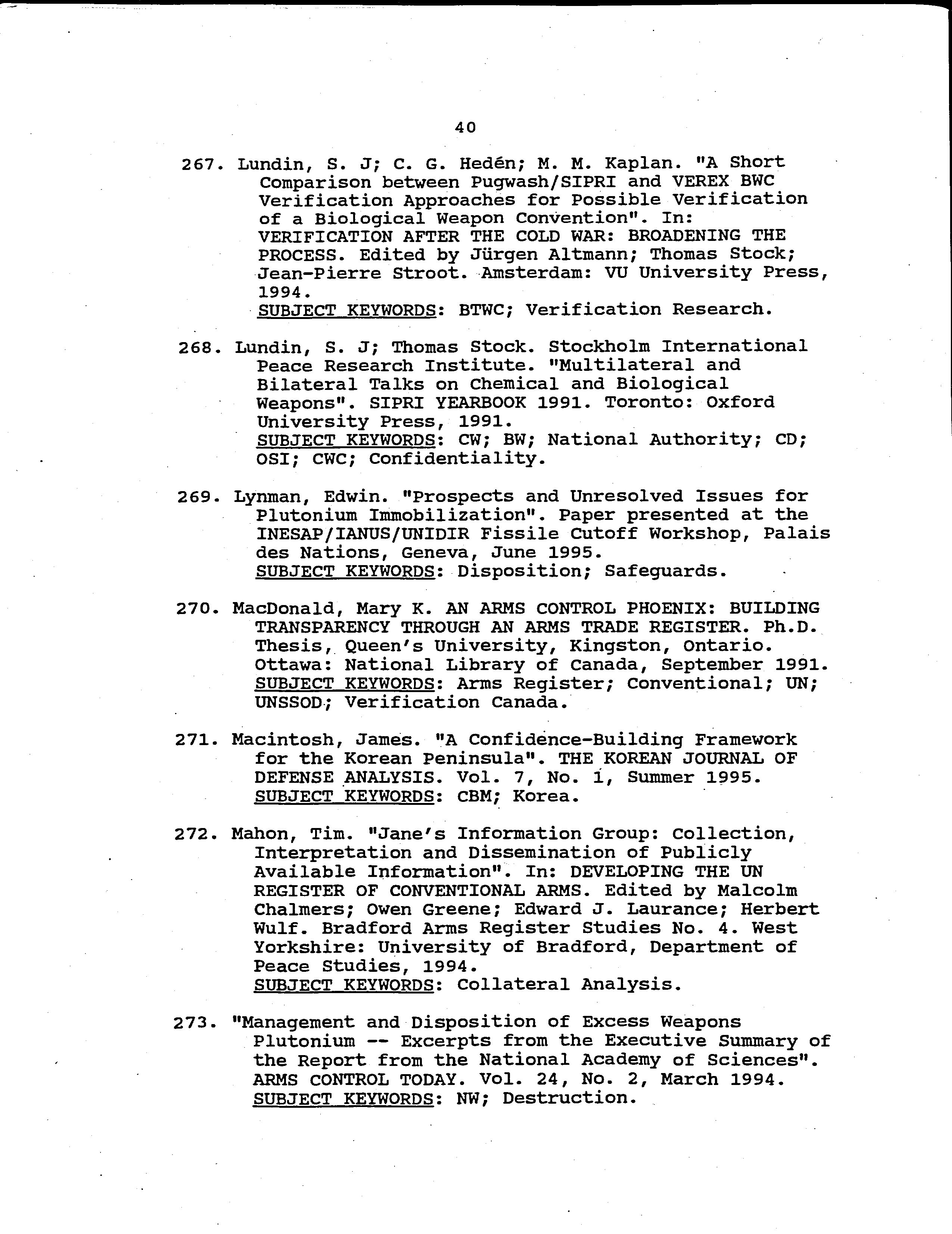- Bibliography on arms control verification : fourth update