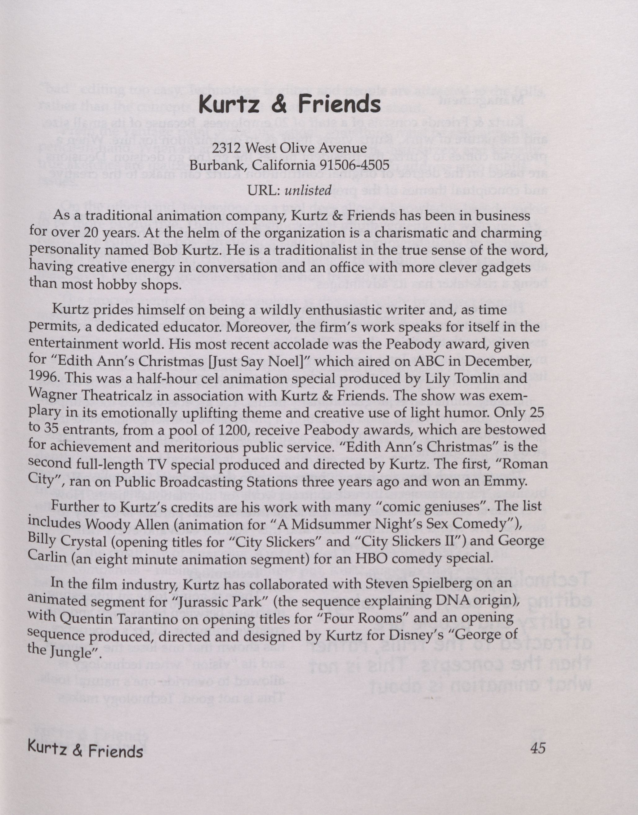 Animation (Cinematography) -- California -- Hollywood