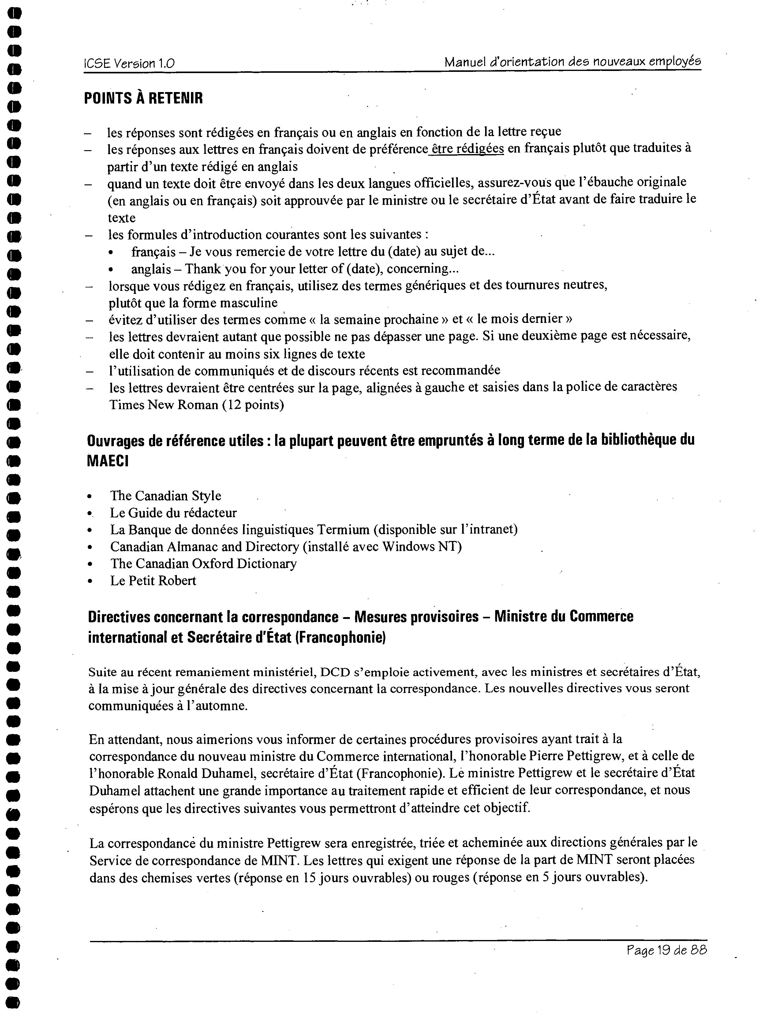 Canada. Ministére des affaires étrangères et du commerce international -- Employées -- Guides, manuels, etc.