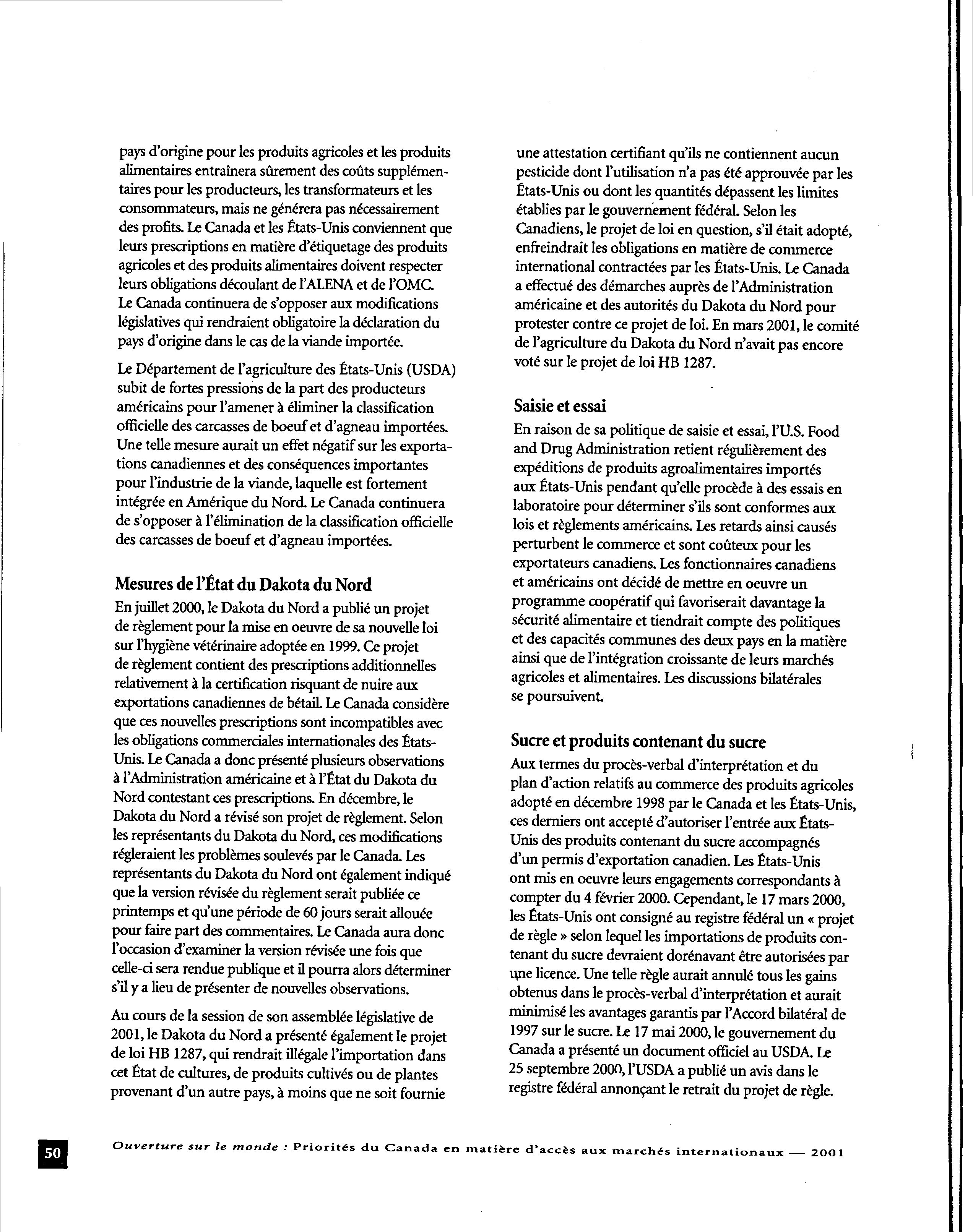 Opening doors to the world : Canada's international market access priorities. 2001
