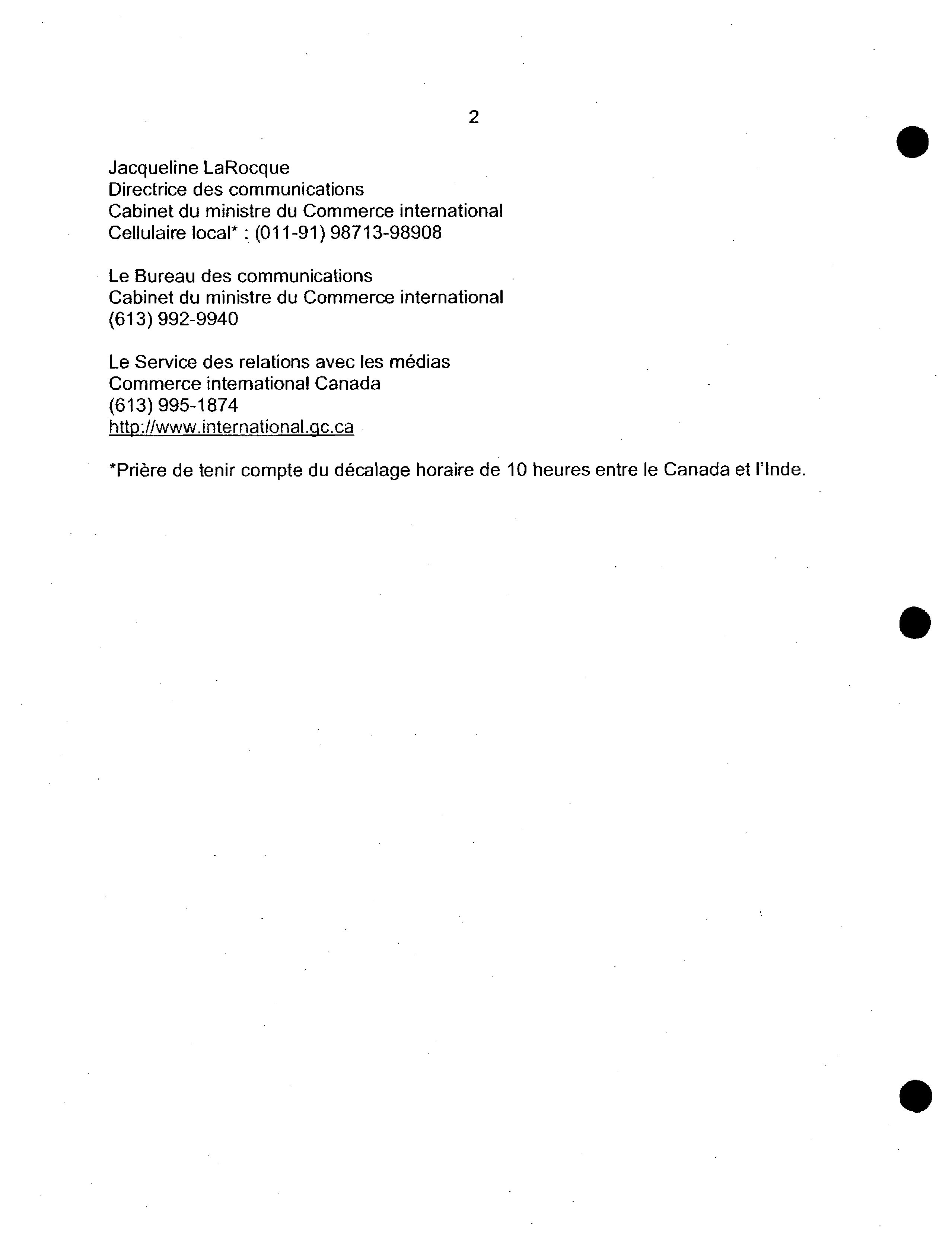 Avis aux médias / Ministère des affaires étrangères et du commerce international. 2005