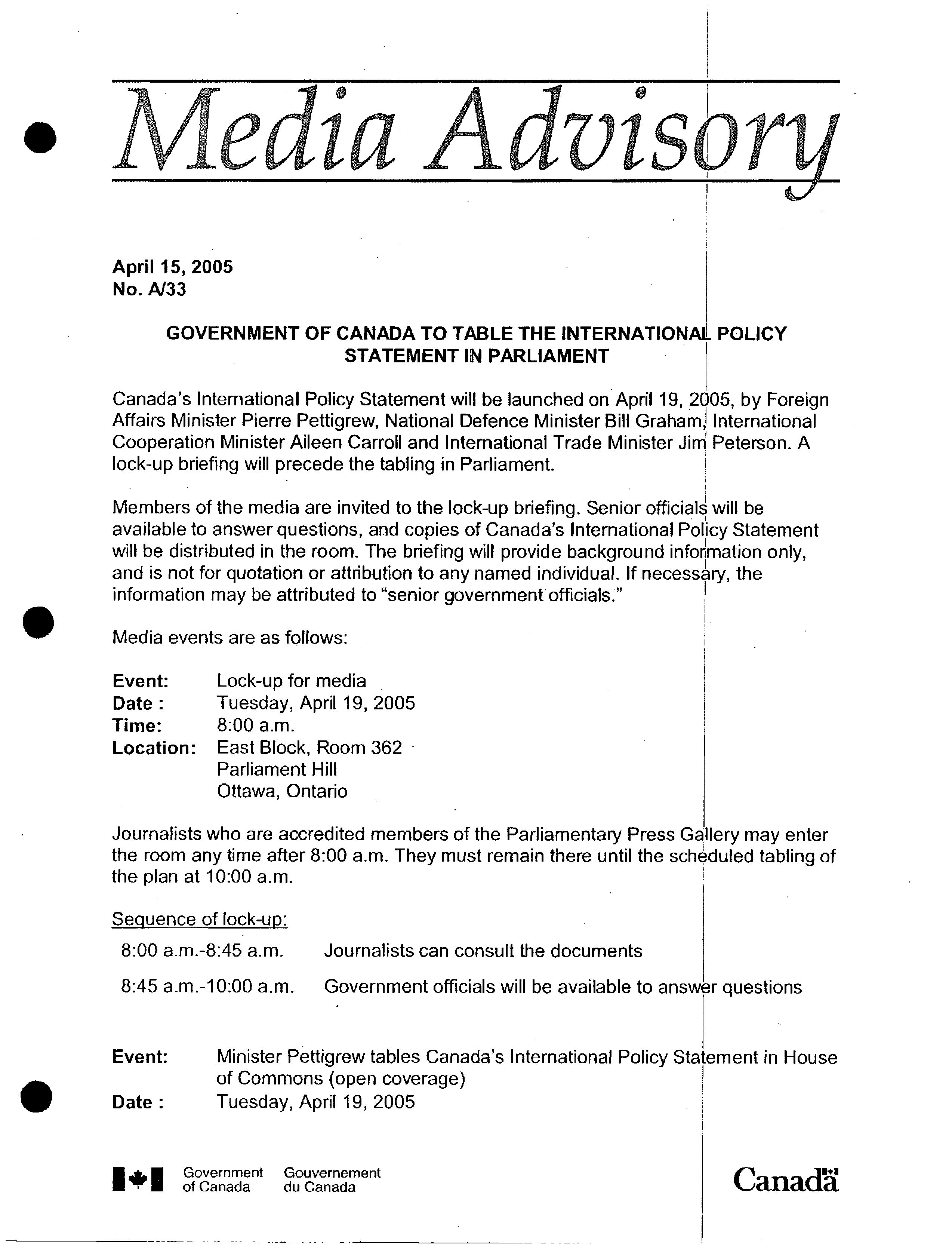 Avis aux médias / Ministère des affaires étrangères et du commerce international. 2005