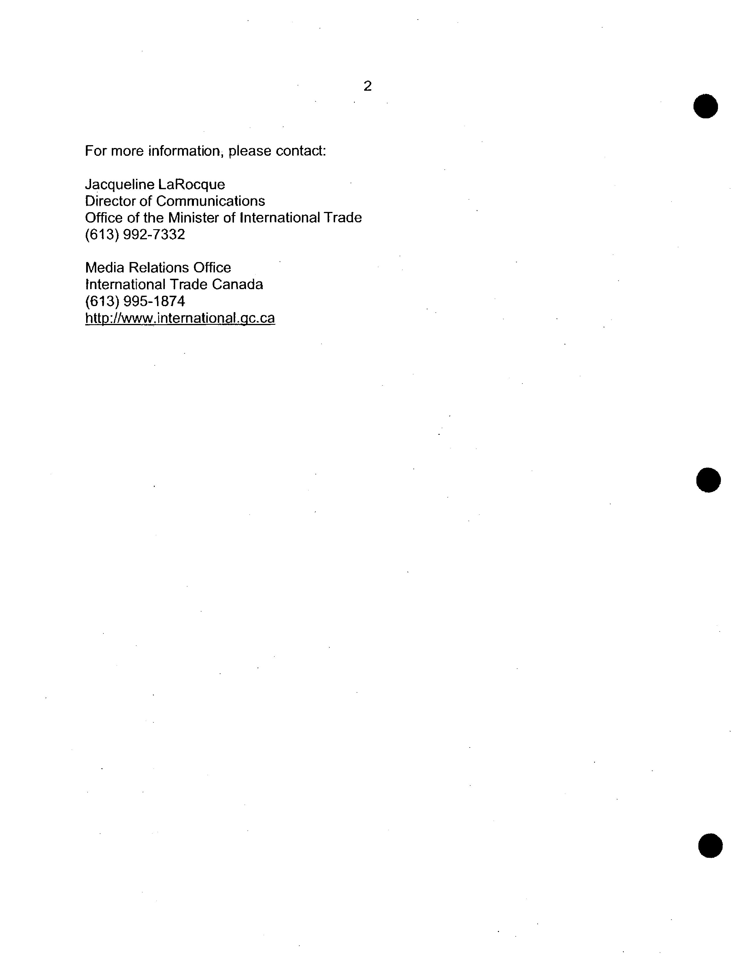 Avis aux médias / Ministère des affaires étrangères et du commerce international. 2005