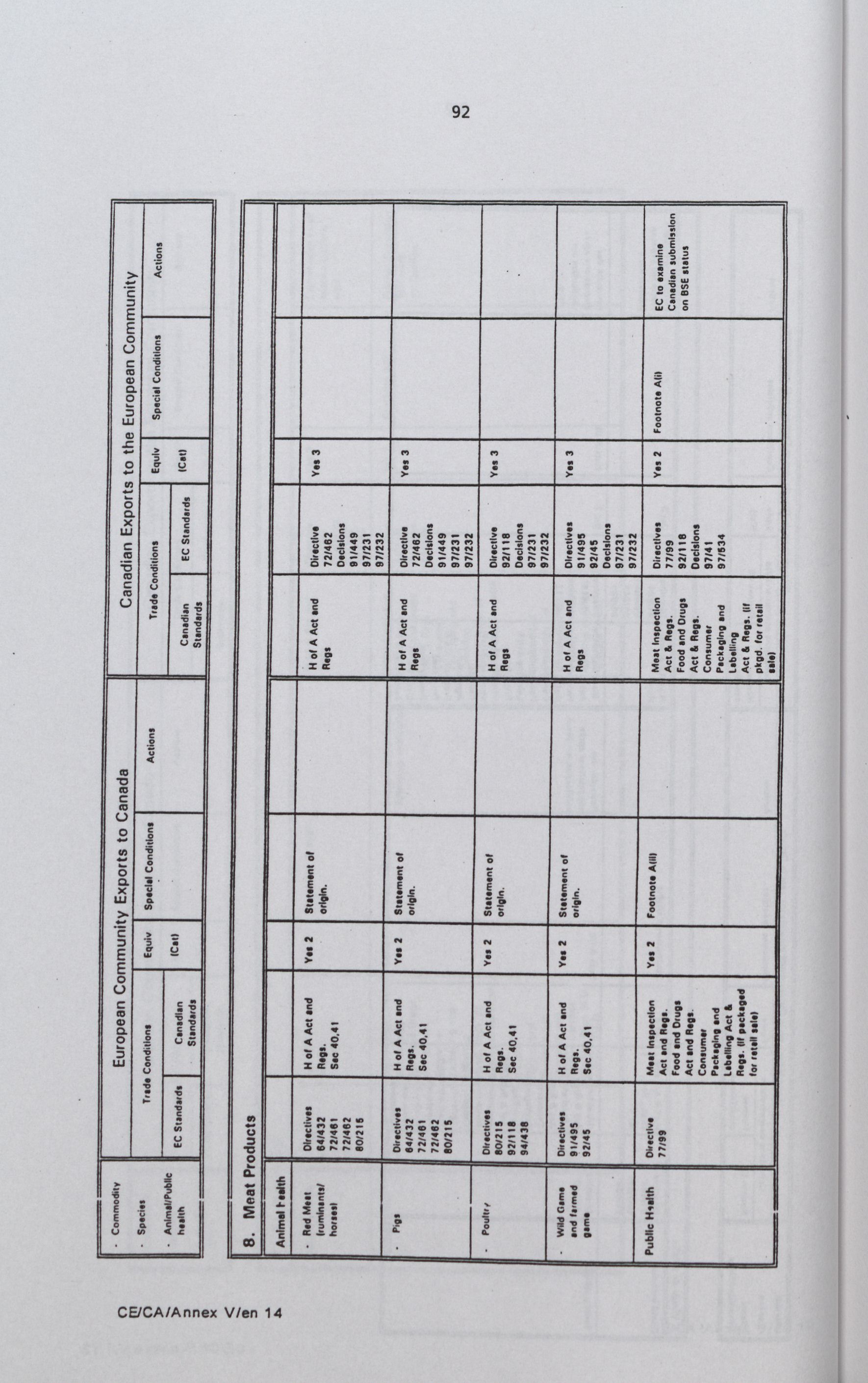 Santé : accord entre le gouvernement du Canada et la Communauté européenne relatif aux mesures sanitaires de protection de la santé publique et animale applicables au commerce d'animaux vivants et de produits animaux (avec annexes)
