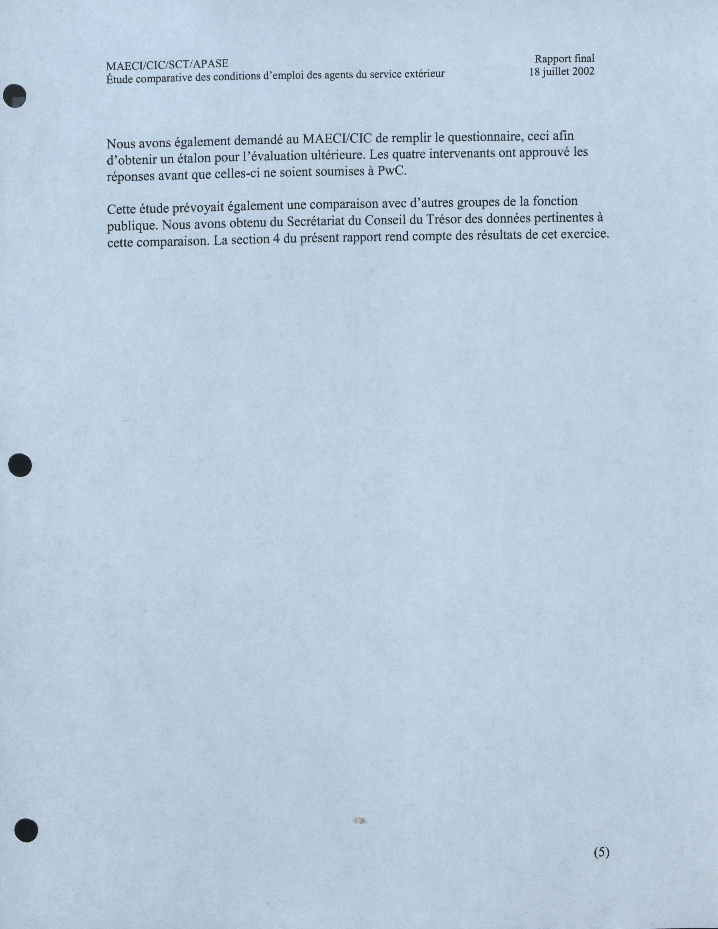 Canada. Comité sur l'étude comparative des conditions d'emploi des agents du service extérieur.
