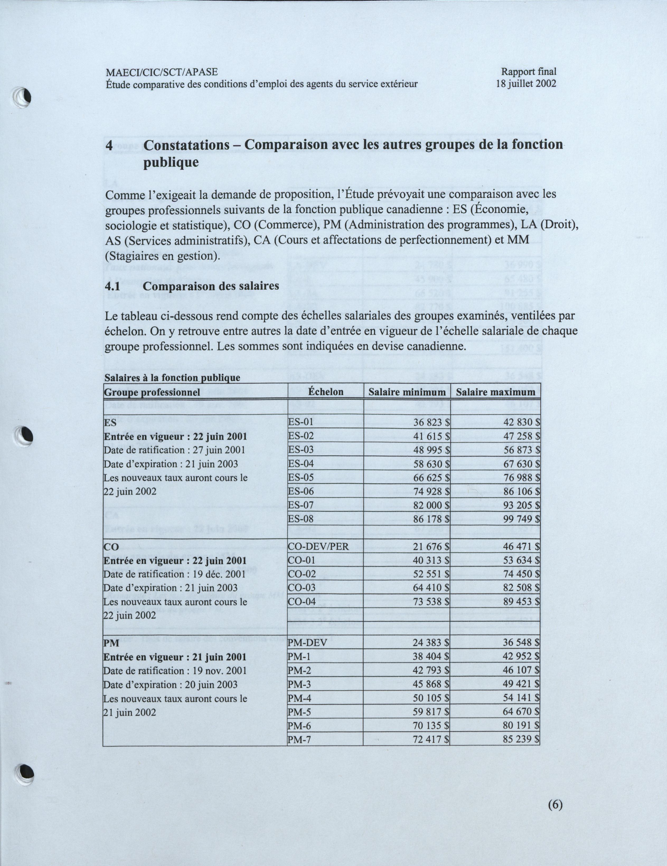 Canada. Comité sur l'étude comparative des conditions d'emploi des agents du service extérieur.