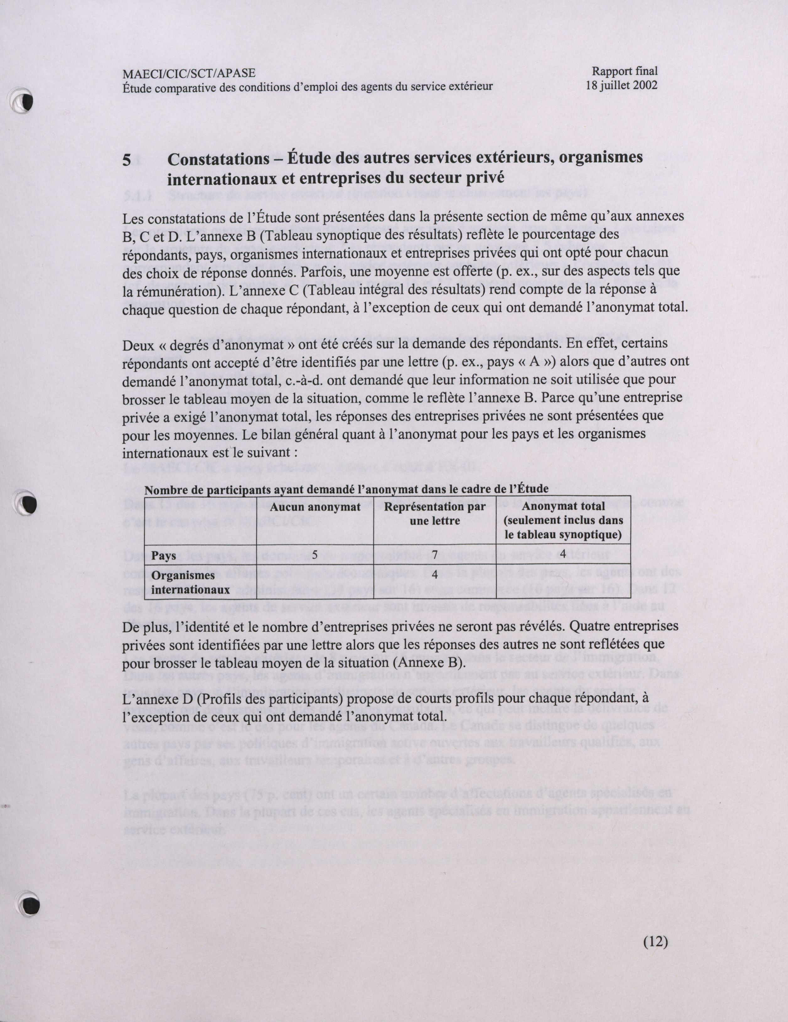 Étude comparative des conditions d'emploi des agents du service extérieur.