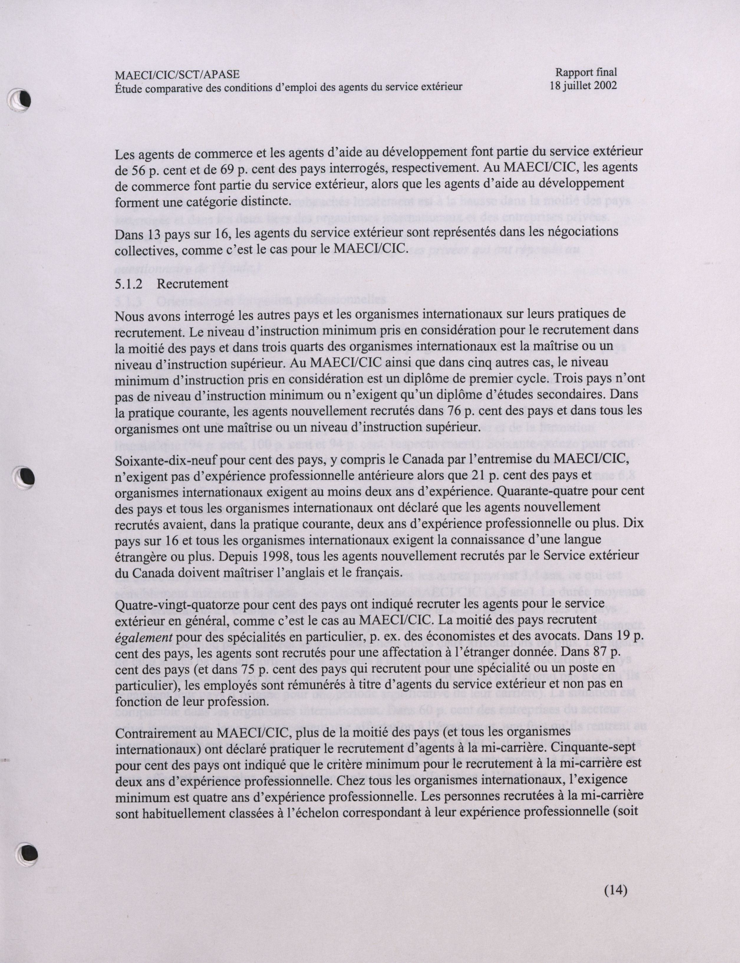 Étude comparative des conditions d'emploi des agents du service extérieur.