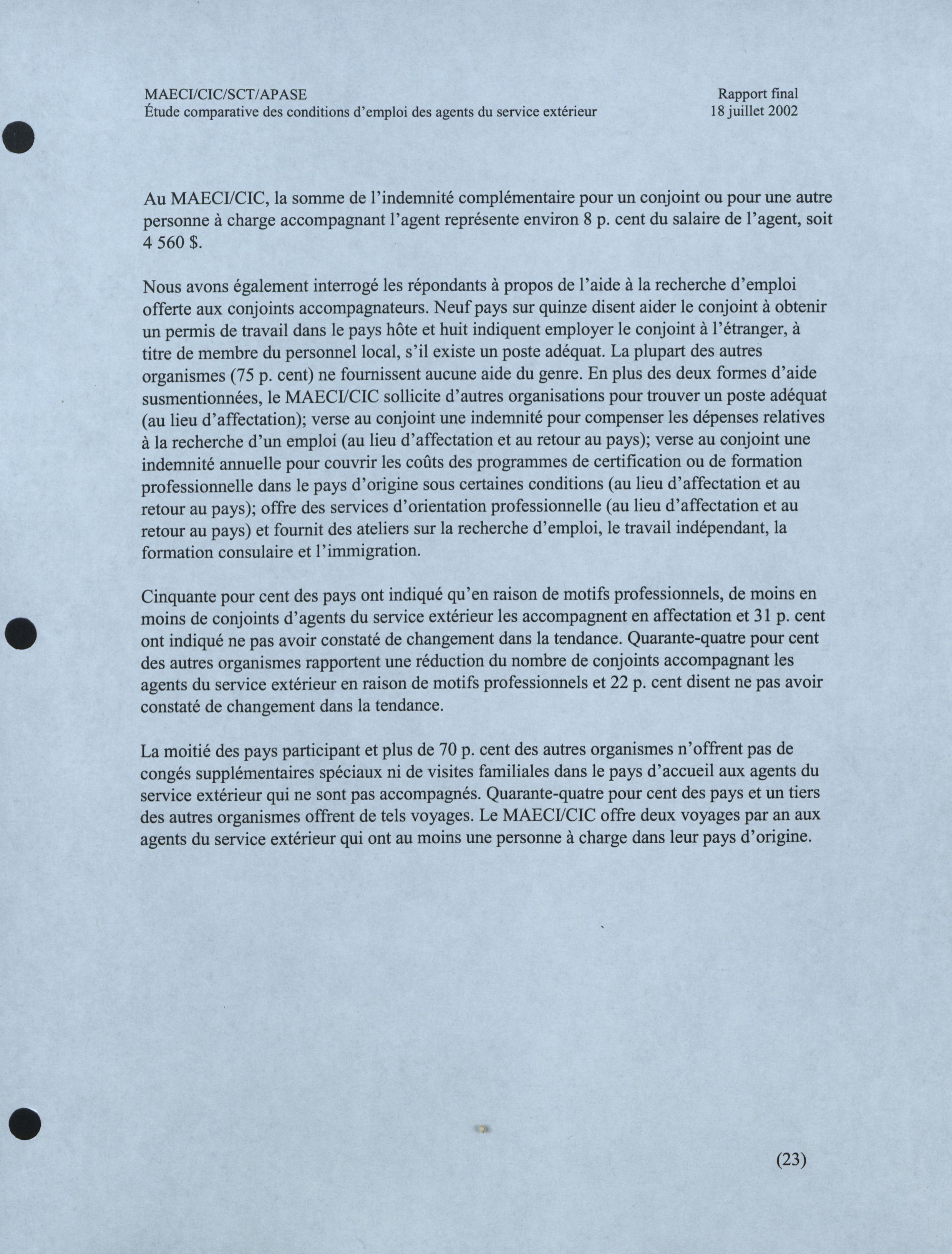 Canada. Comité sur l'étude comparative des conditions d'emploi des agents du service extérieur.