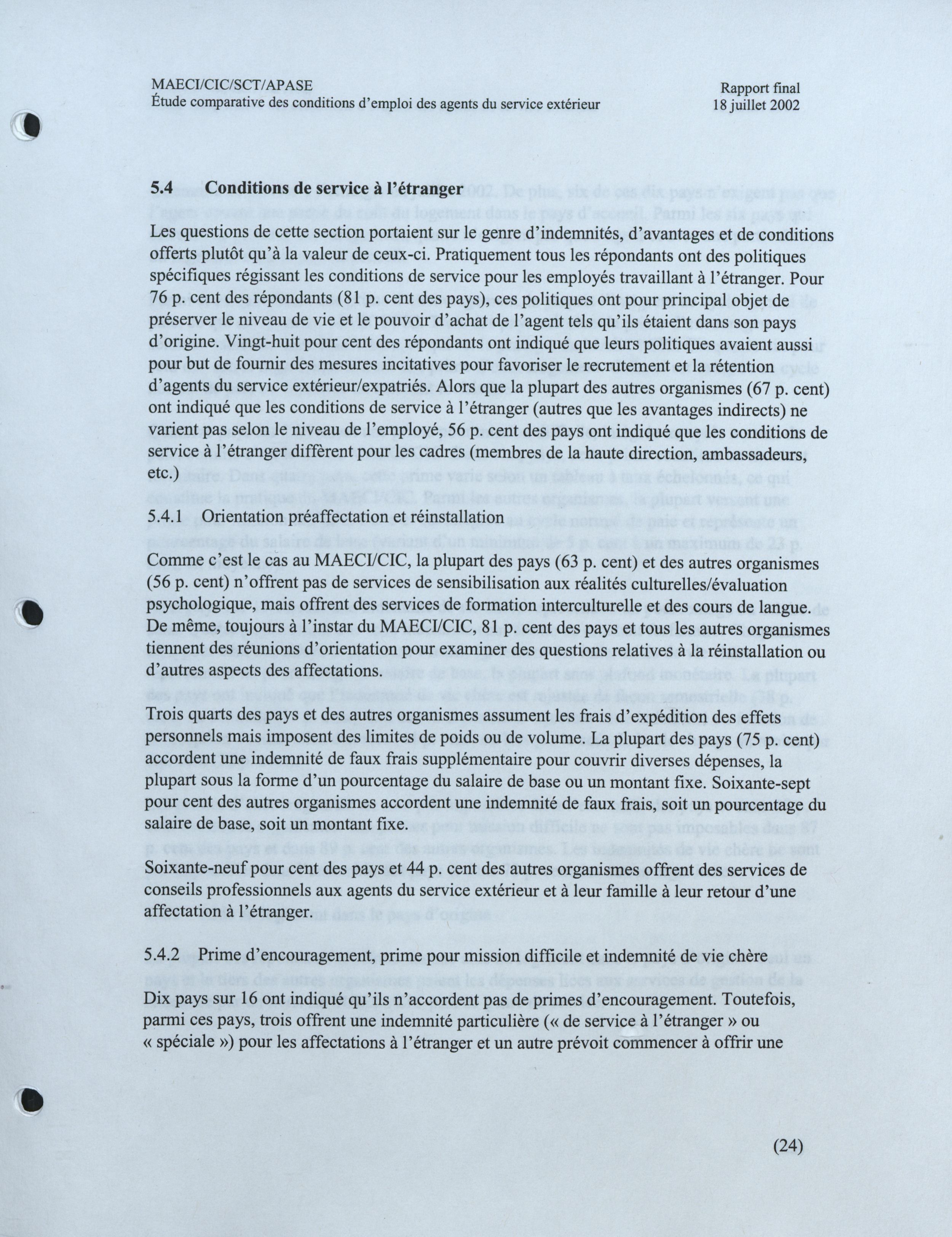Étude comparative des conditions d'emploi des agents du service extérieur.