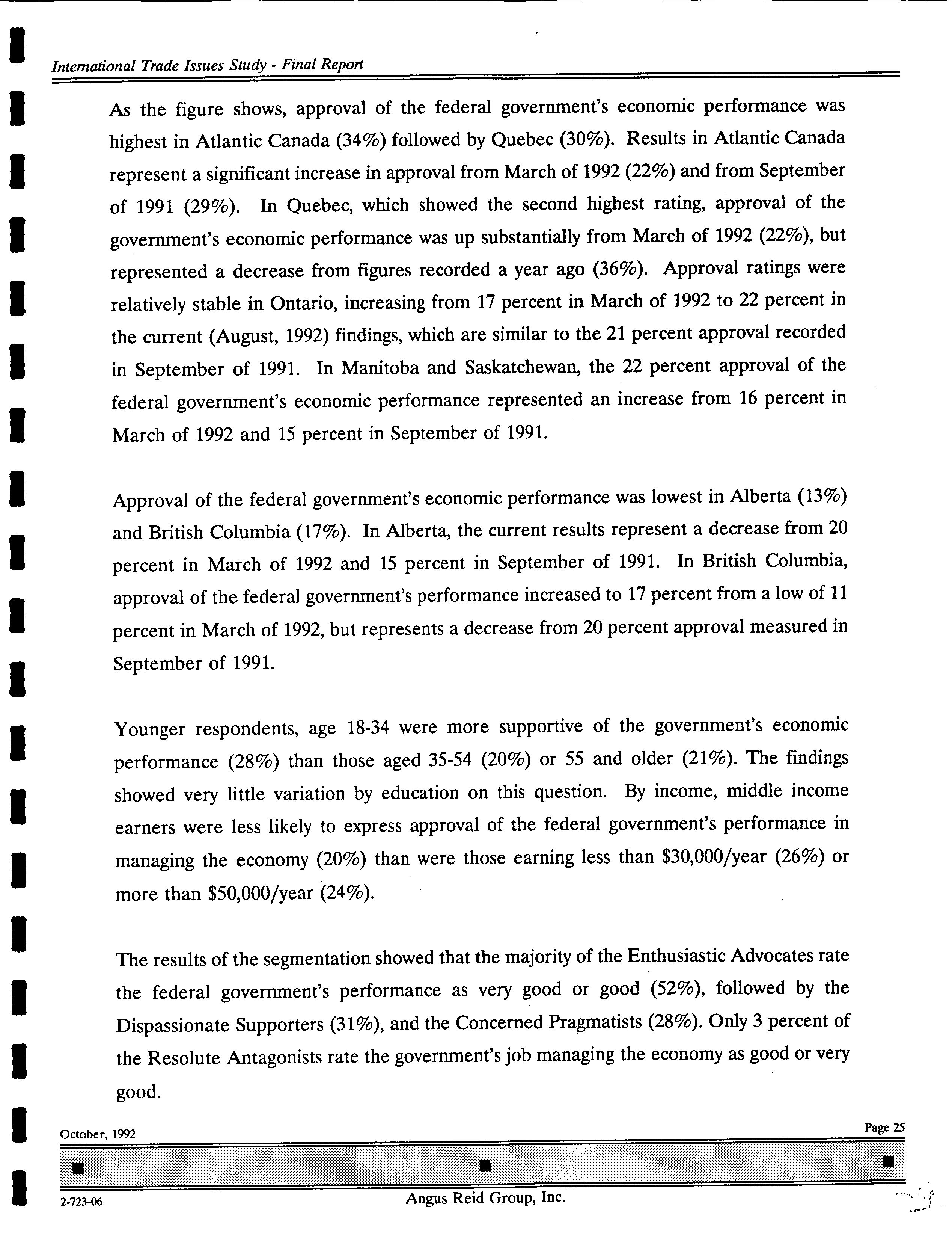 Canadian public opinion on international trade issues : final report on research findings / submitted to External Affairs ; submitted by Angus Reid Group, Inc. -- : Vol. 1 (Oct. 1992)