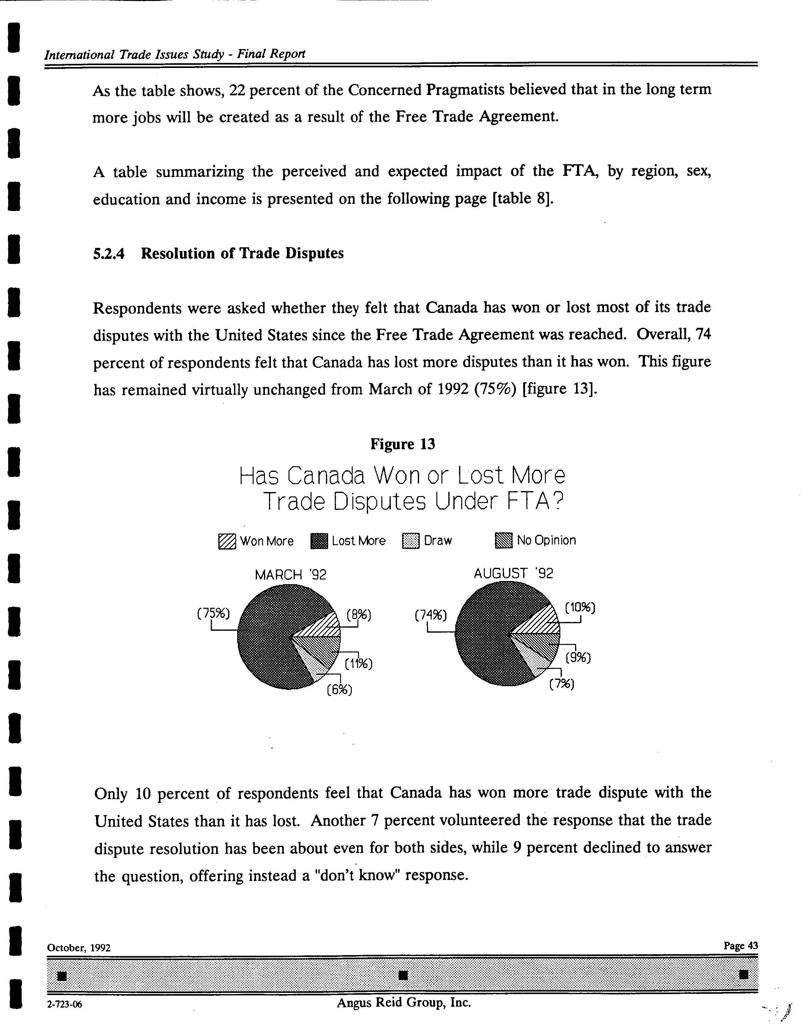 Canadian public opinion on international trade issues : final report on research findings / submitted to External Affairs ; submitted by Angus Reid Group, Inc. -- : Vol. 1 (Oct. 1992)