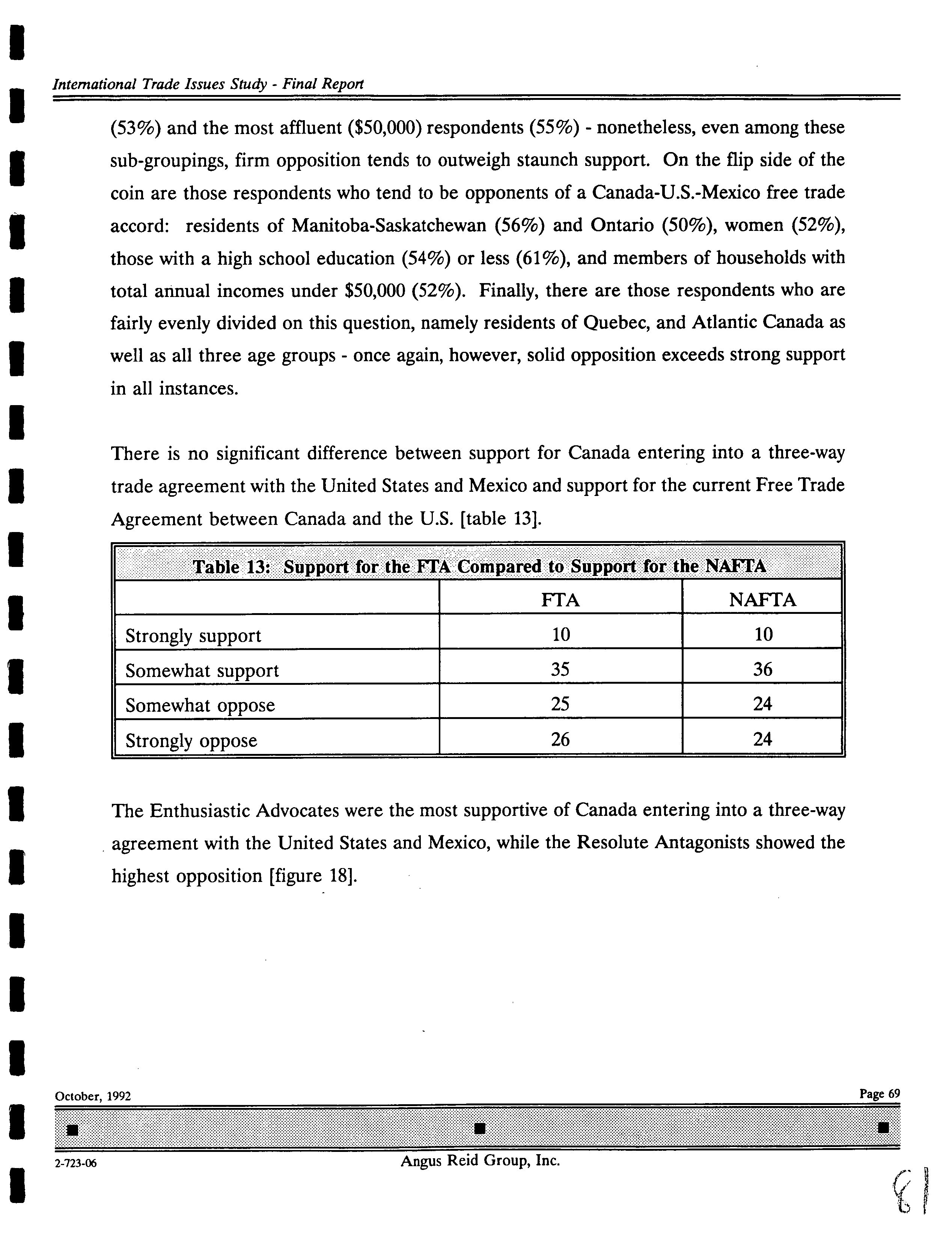 Canadian public opinion on international trade issues : final report on research findings / submitted to External Affairs ; submitted by Angus Reid Group, Inc. Vol. 1 (Oct. 1992)