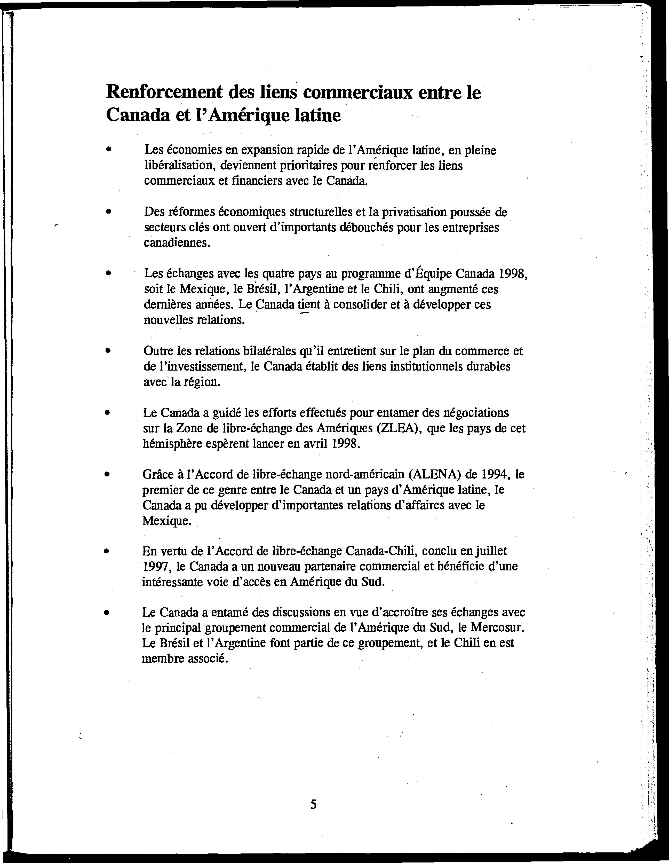 Visite du premier ministre Jean Chrétien et d'Équipe Canada au Mexique, au Brésil en Argentine et au Chili du 10 au 23 janvier 1998 : cahier d'information.