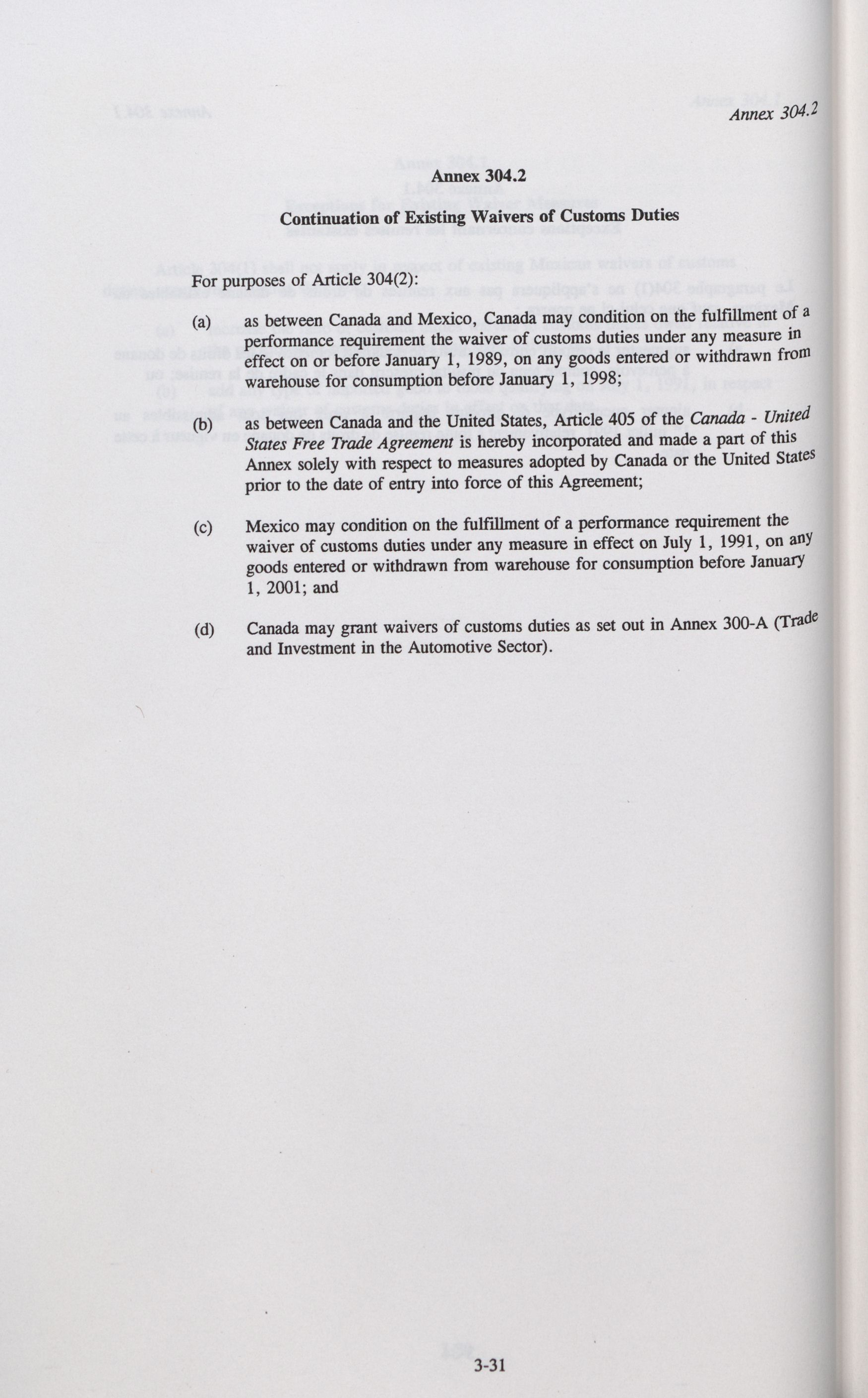 North American Free Trade Agreement between the Government of Canada, the Government of the United Mexican States and the Government of the United States of America.