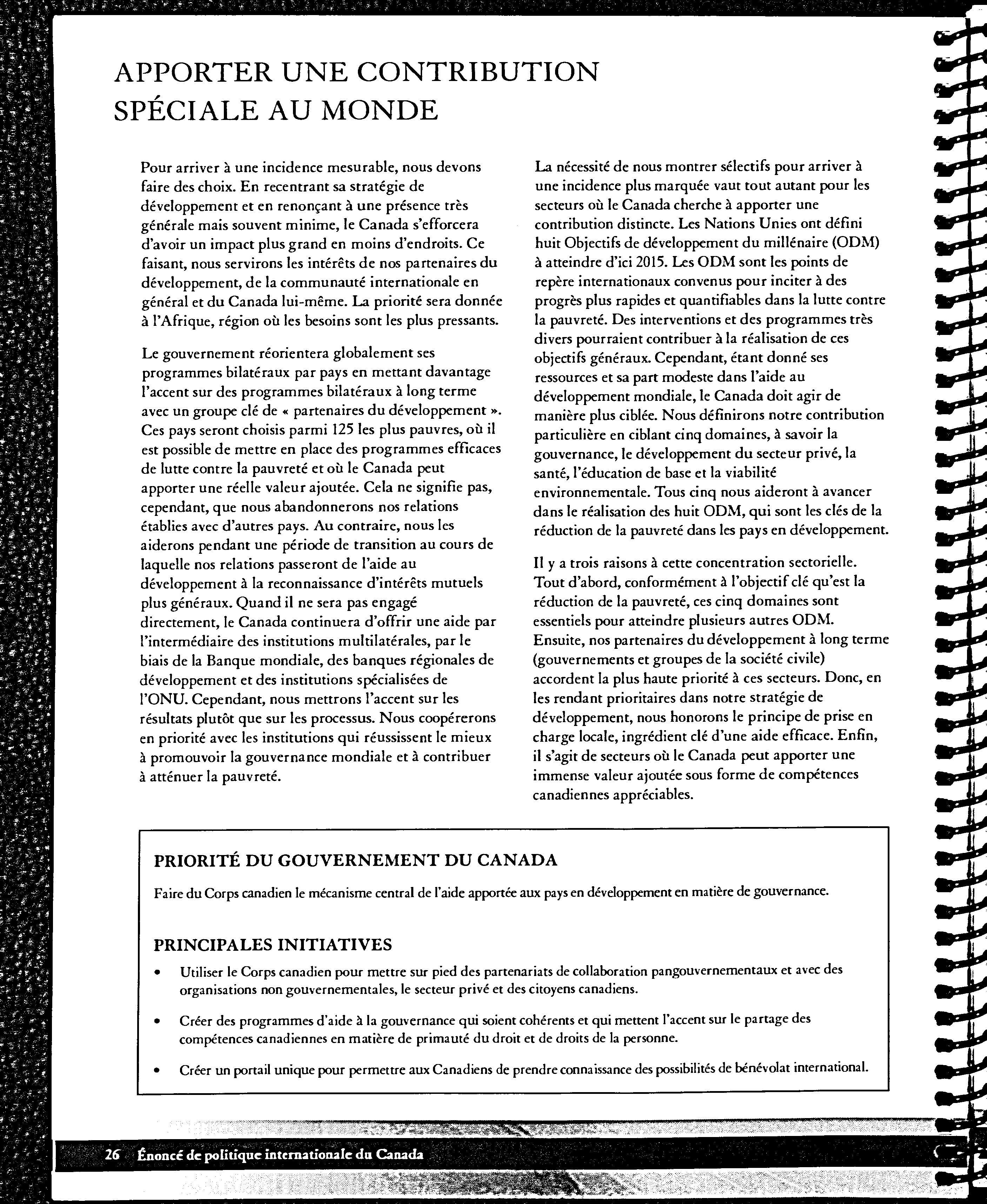 Titre de la page de titre additionnelle: Canada's international policy : a role of pride and influence in the world. Overview.
