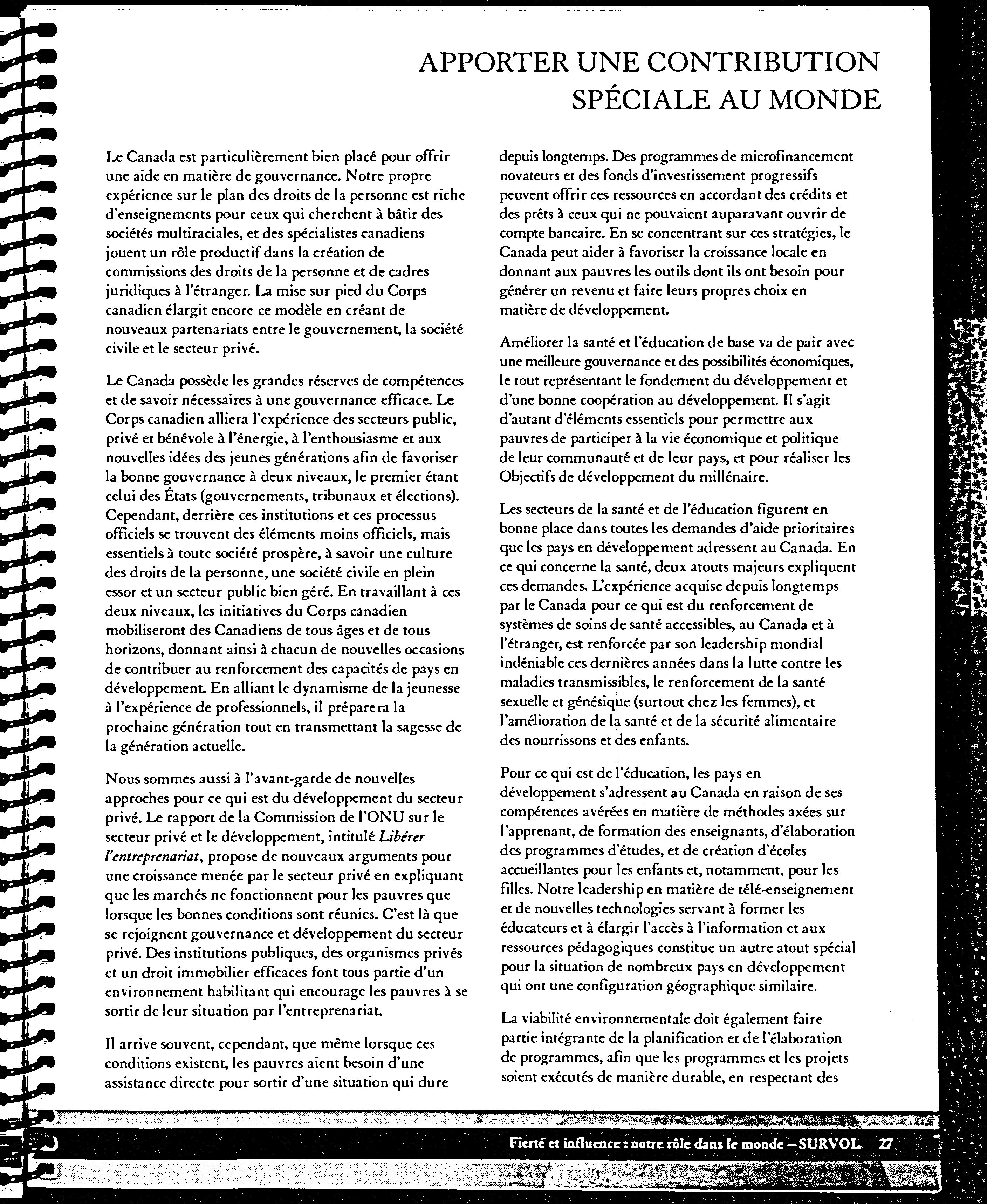 Titre de la page de titre additionnelle: Canada's international policy : a role of pride and influence in the world. Overview.