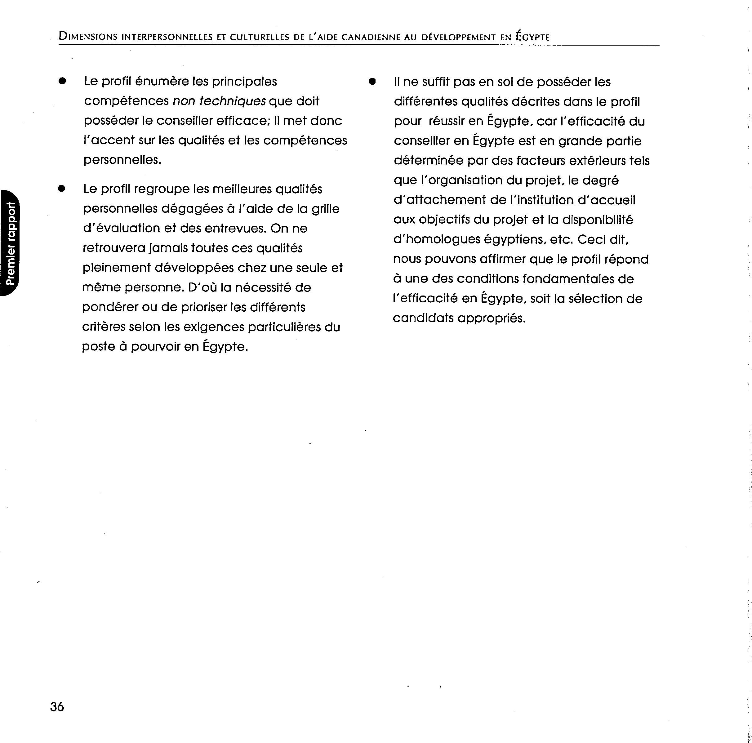 Dimensions interpersonnelles et culturelles de l'aide canadienne au développement en Égypte