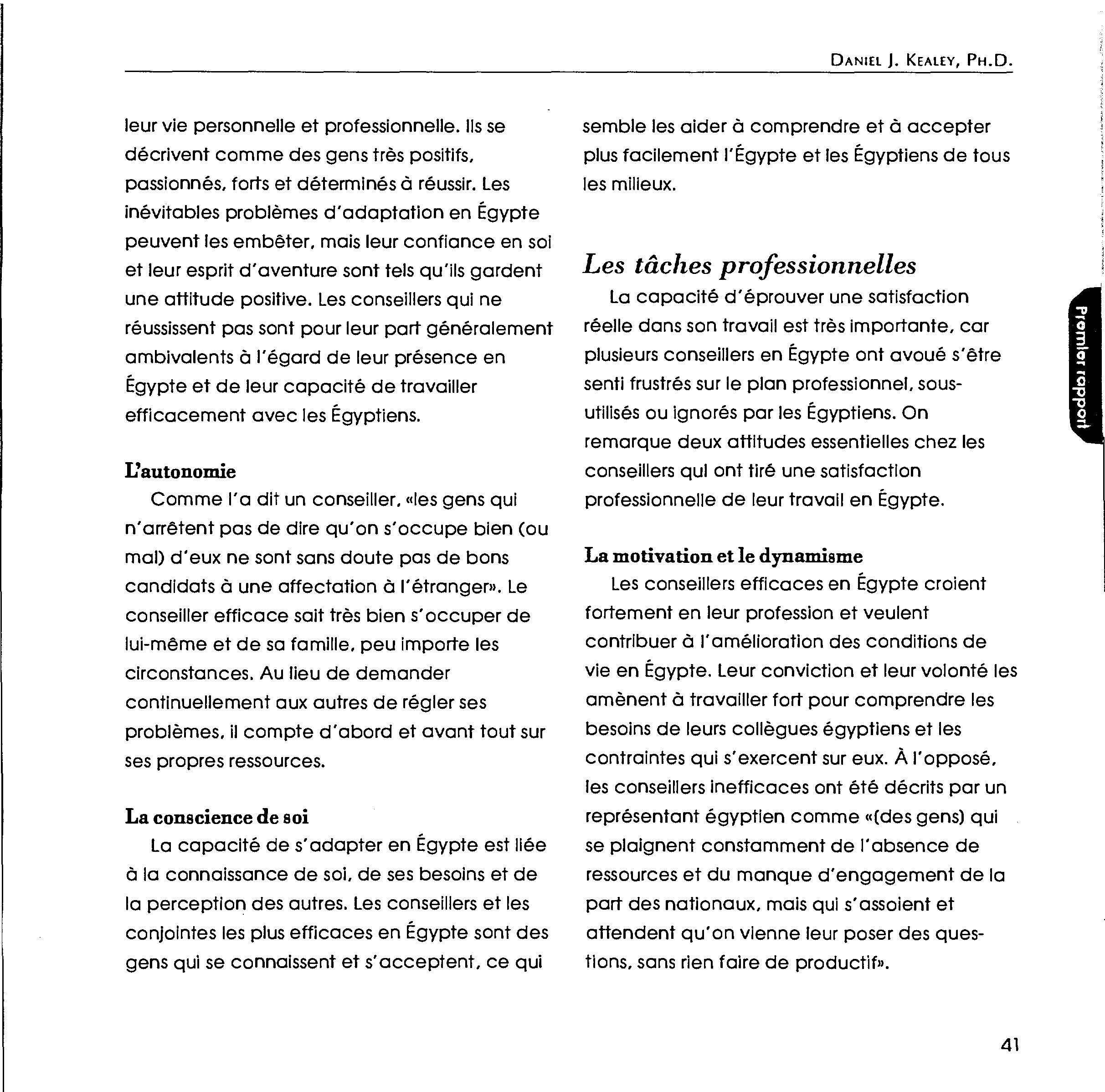 Dimensions interpersonnelles et culturelles de l'aide canadienne au développement en Égypte