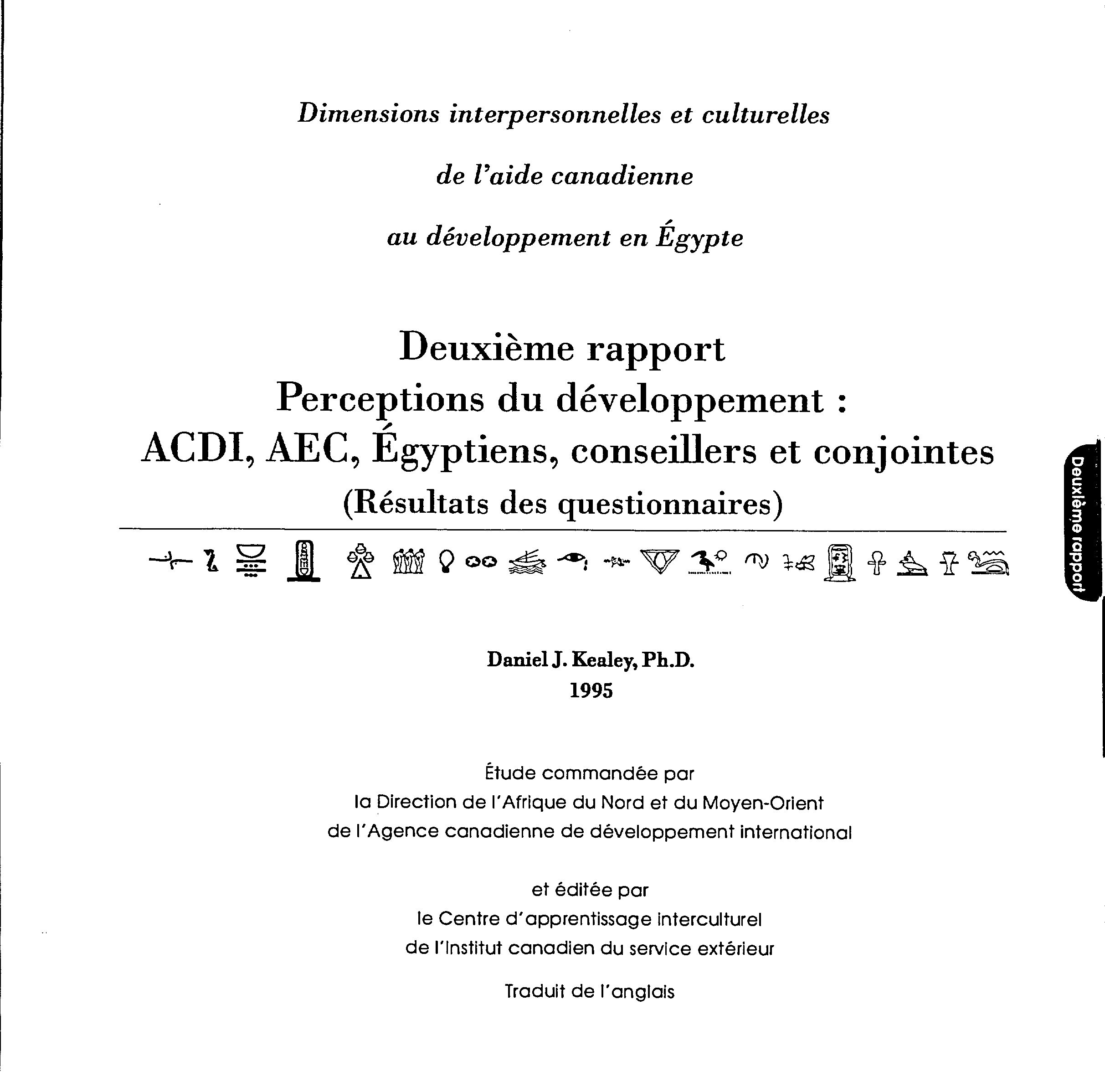 Dimensions interpersonnelles et culturelles de l'aide canadienne au développement en Égypte
