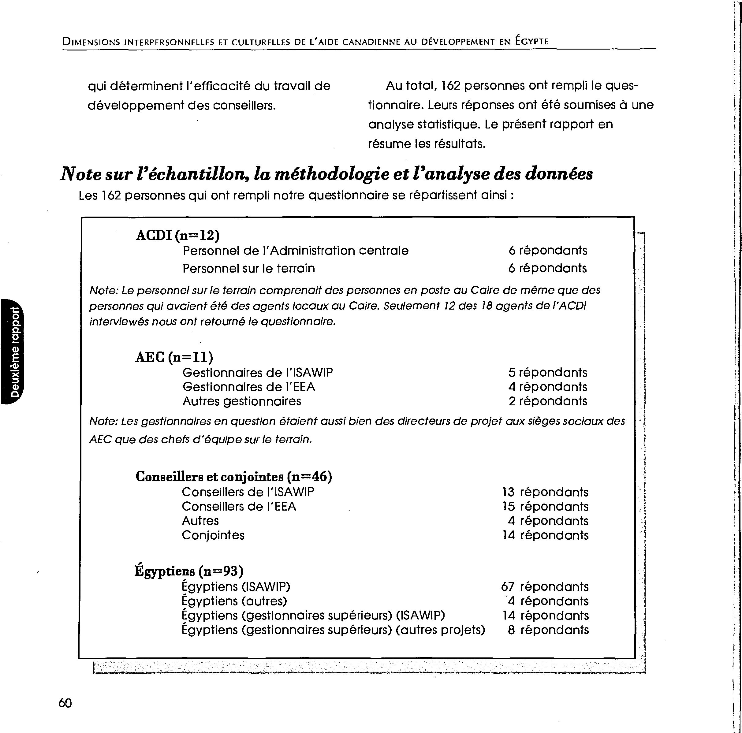 Dimensions interpersonnelles et culturelles de l'aide canadienne au développement en Égypte