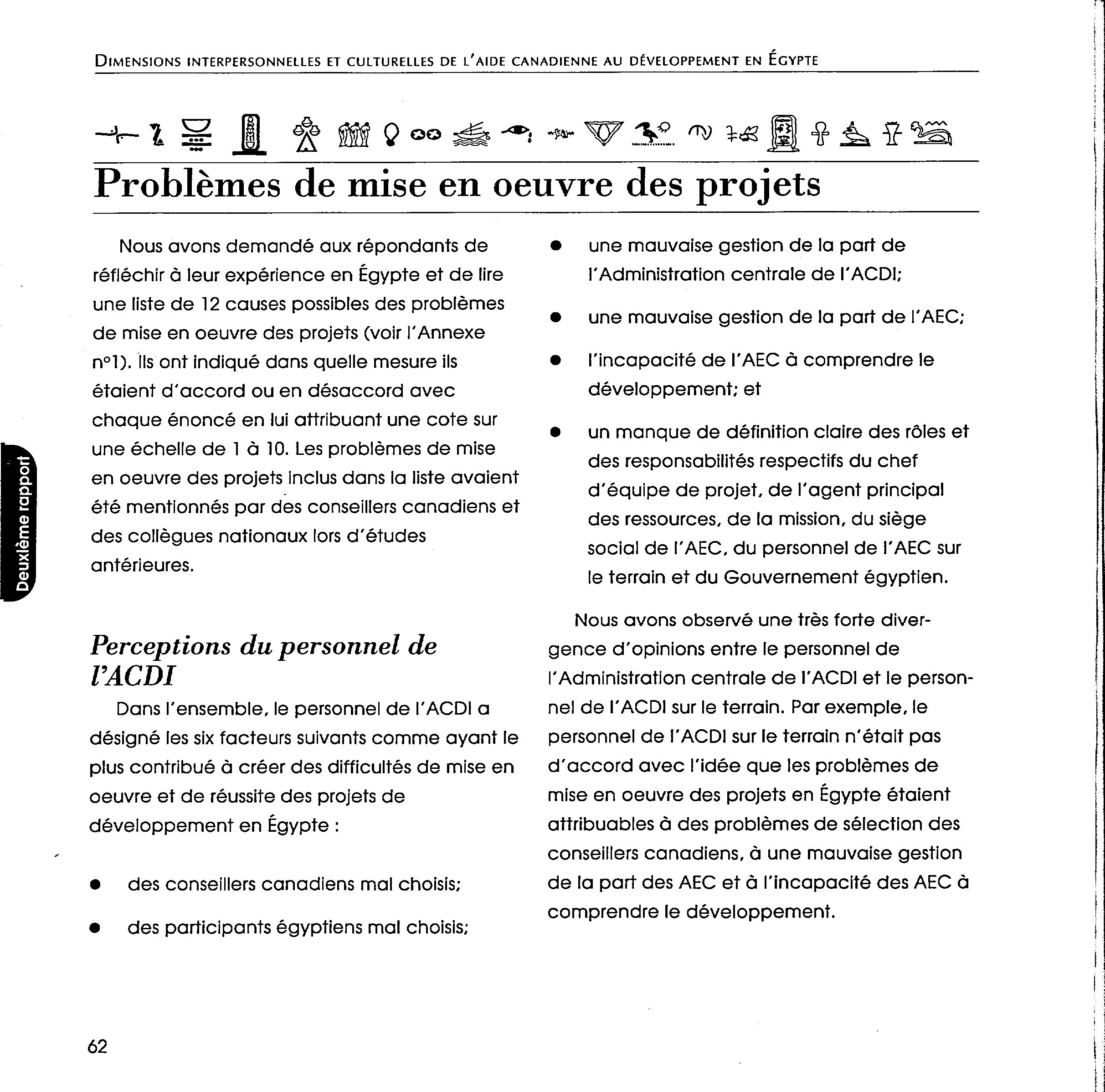 Dimensions interpersonnelles et culturelles de l'aide canadienne au développement en Égypte
