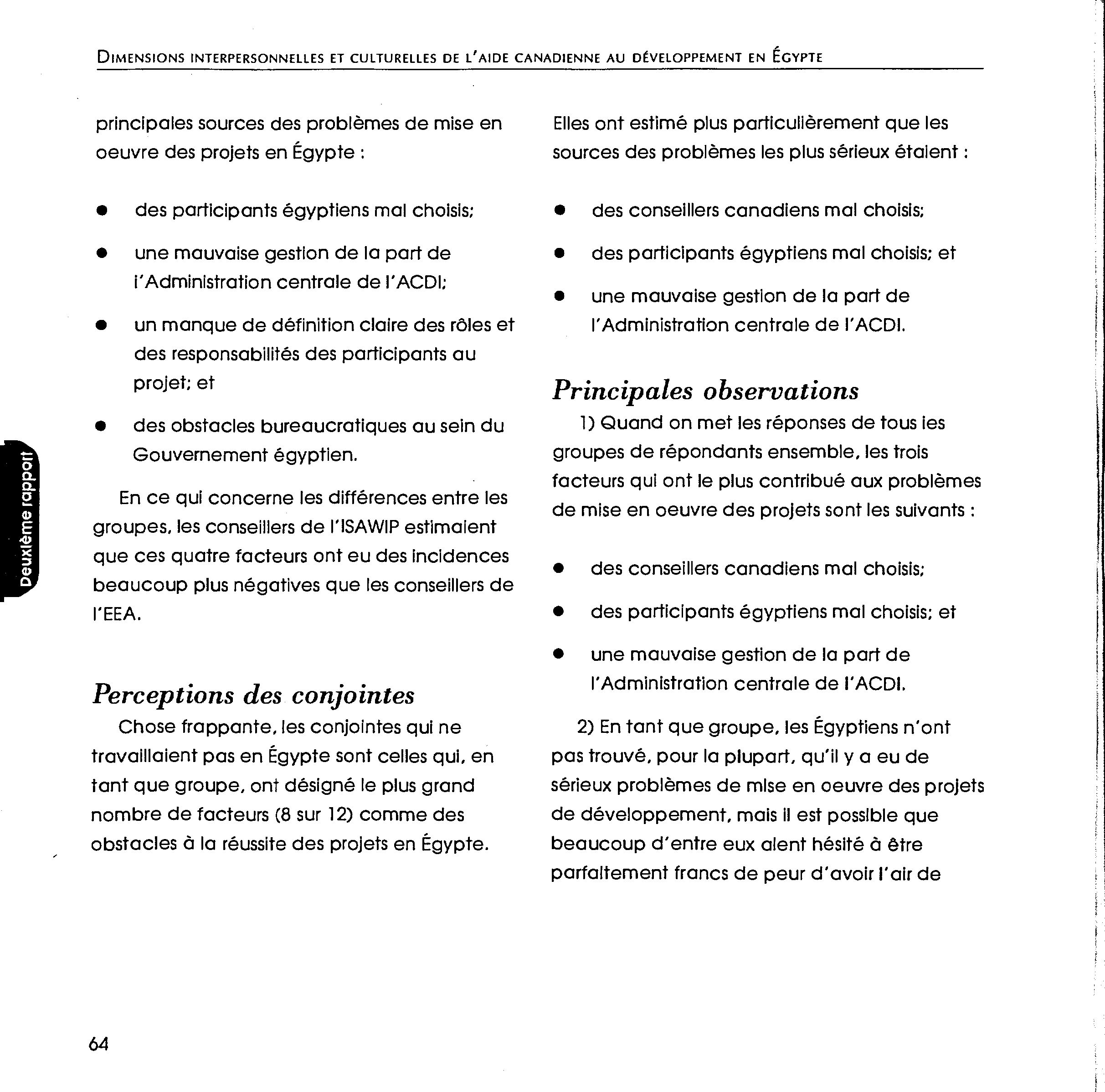 - Dimensions interpersonnelles et culturelles de l'aide canadienne au développement en Égypte