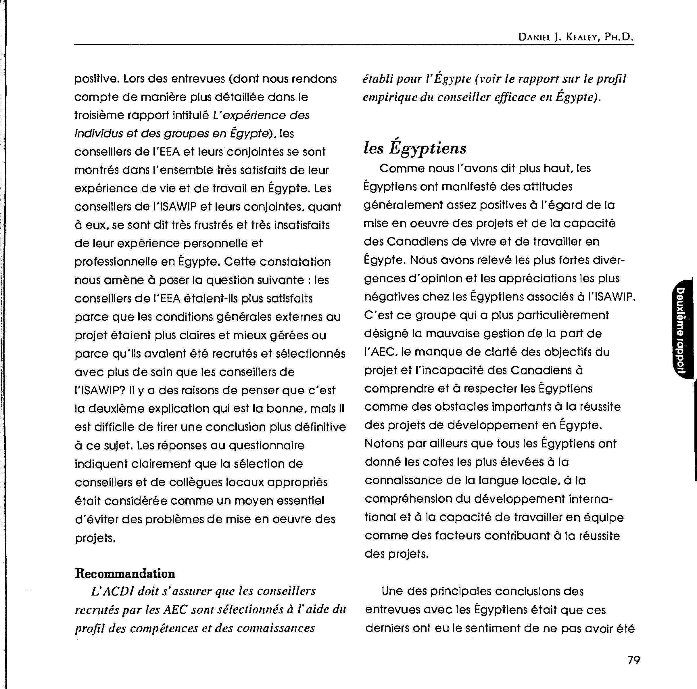 Dimensions interpersonnelles et culturelles de l'aide canadienne au développement en Égypte