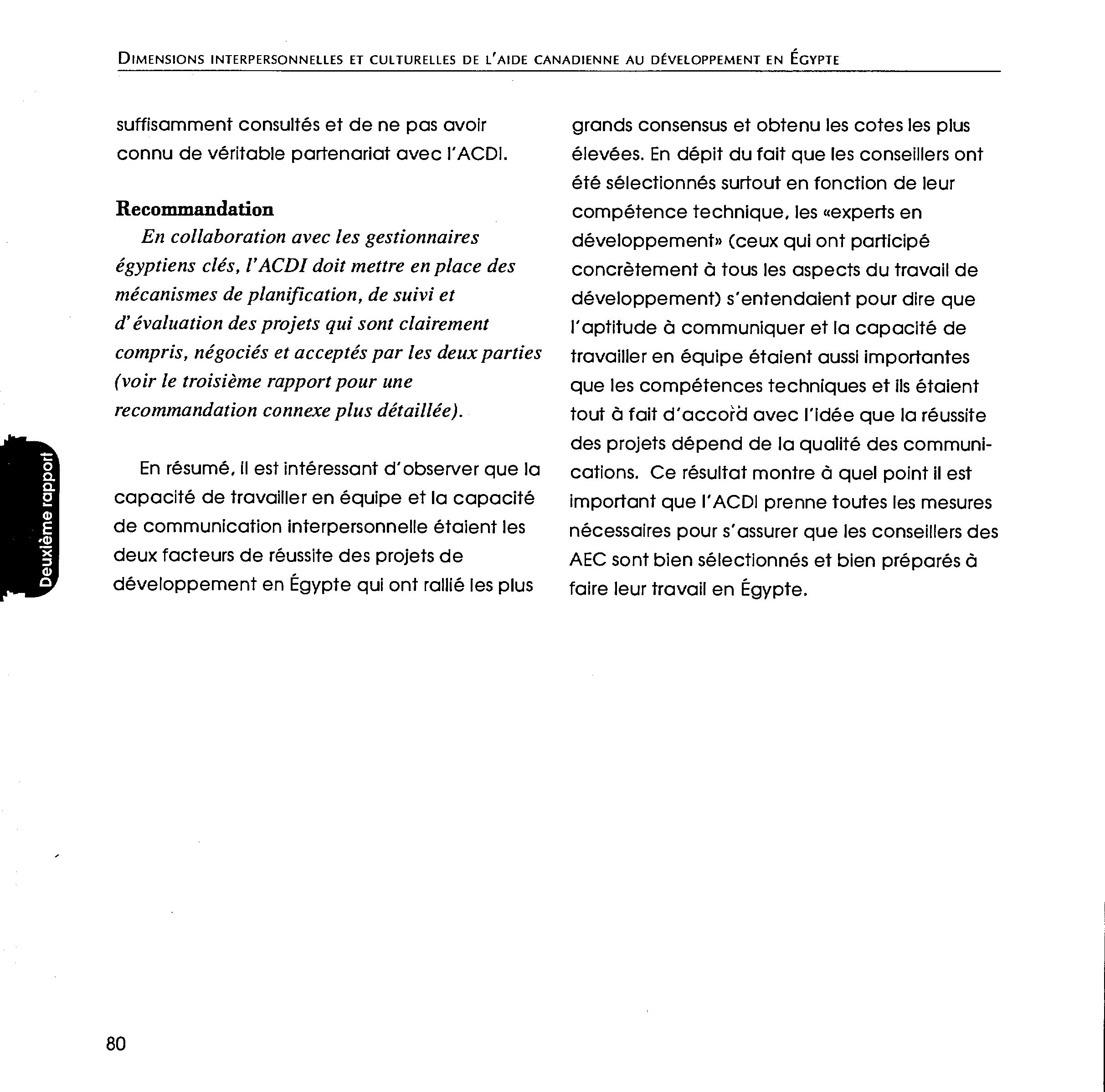 Dimensions interpersonnelles et culturelles de l'aide canadienne au développement en Égypte