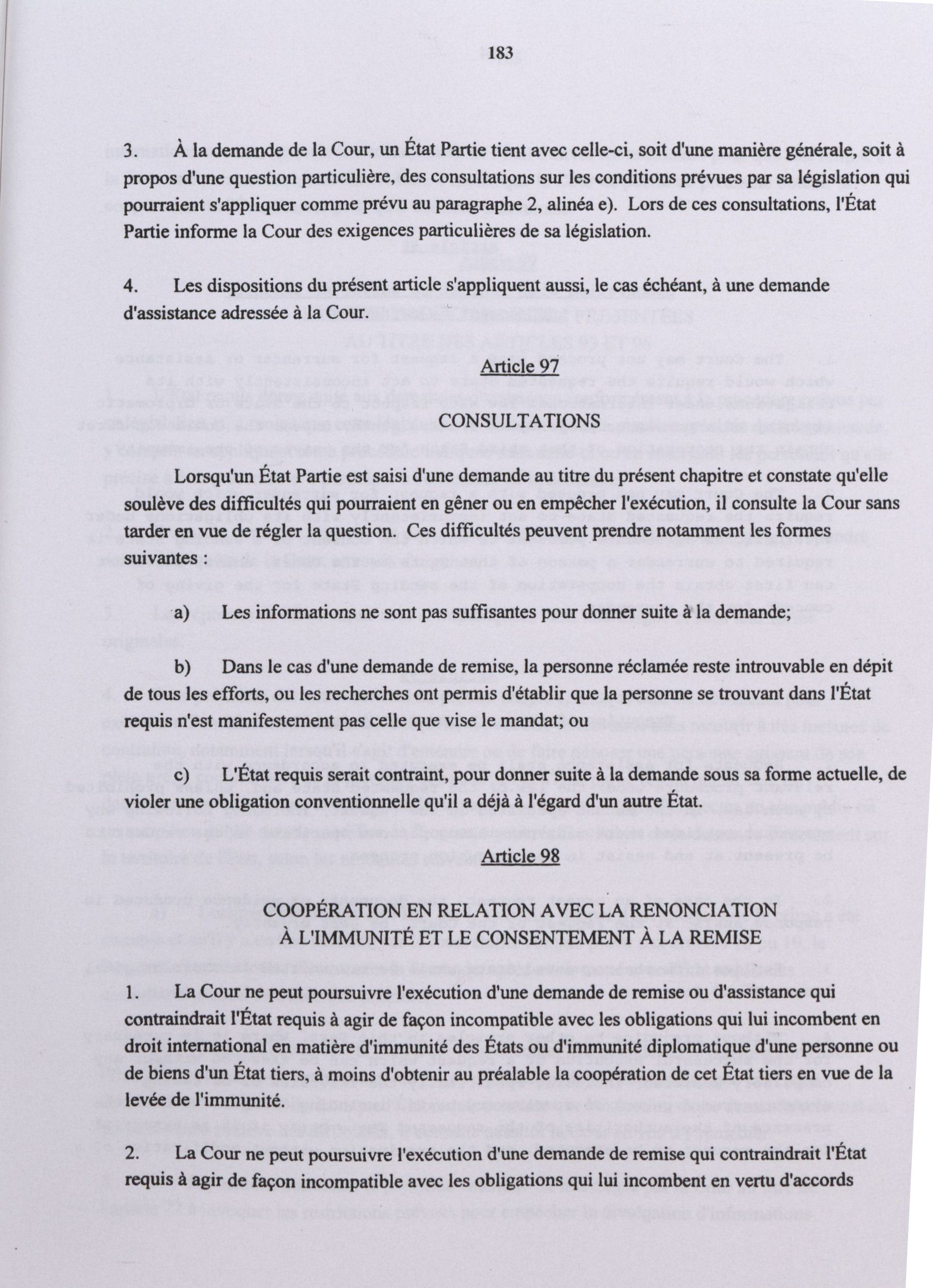 Cours internationales : Statut de Rome de la Cour pénale internationale.