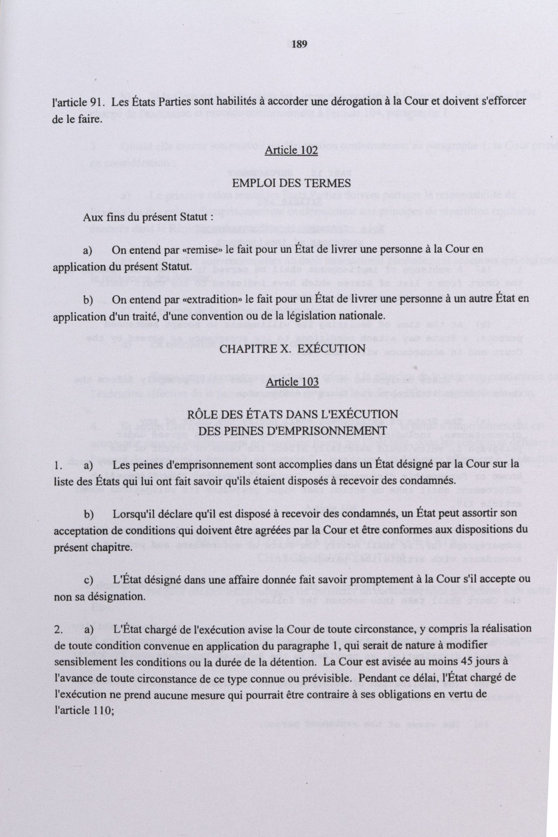 Cours internationales : Statut de Rome de la Cour pénale internationale.