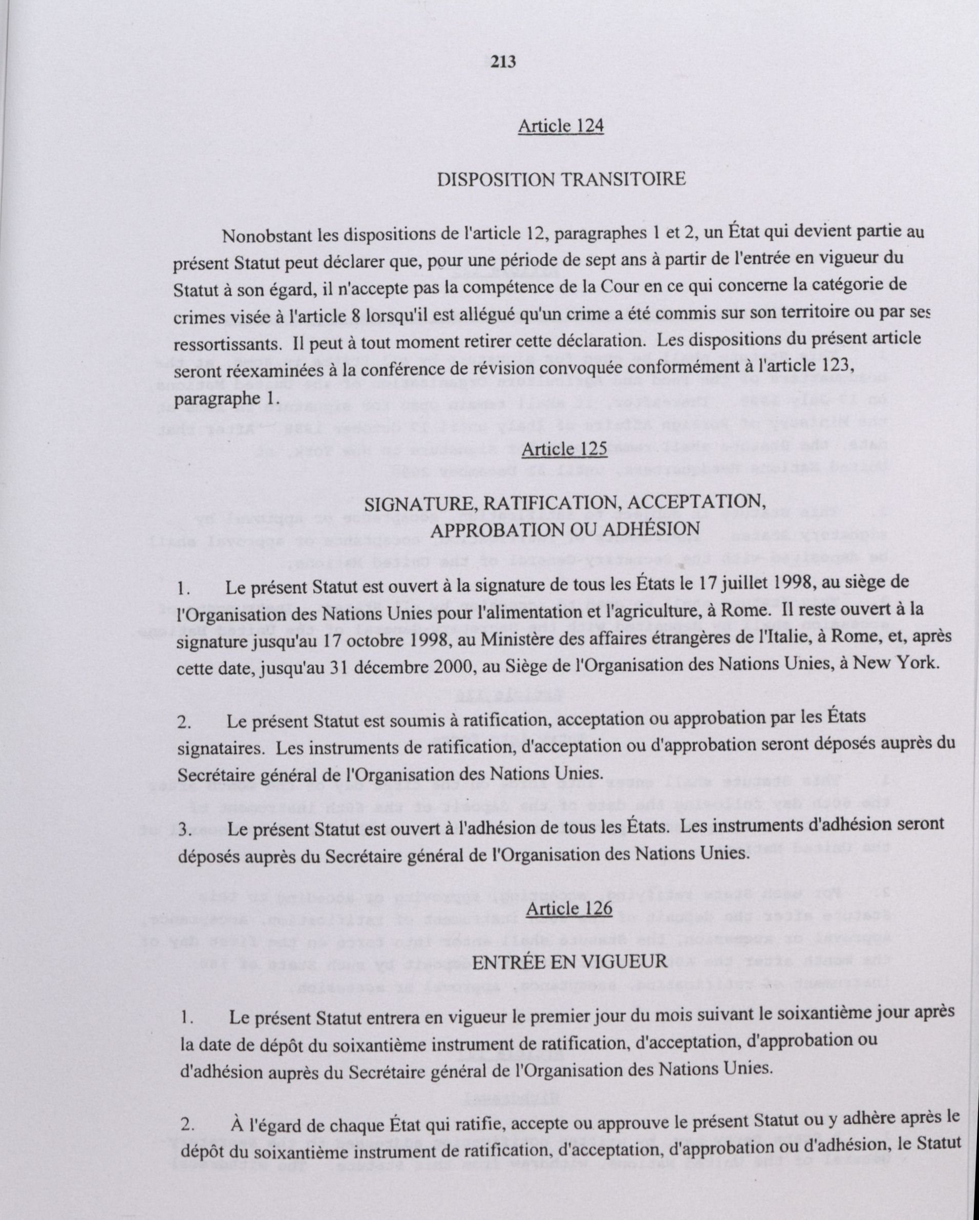 Statut de Rome de la Cour pénale internationale.