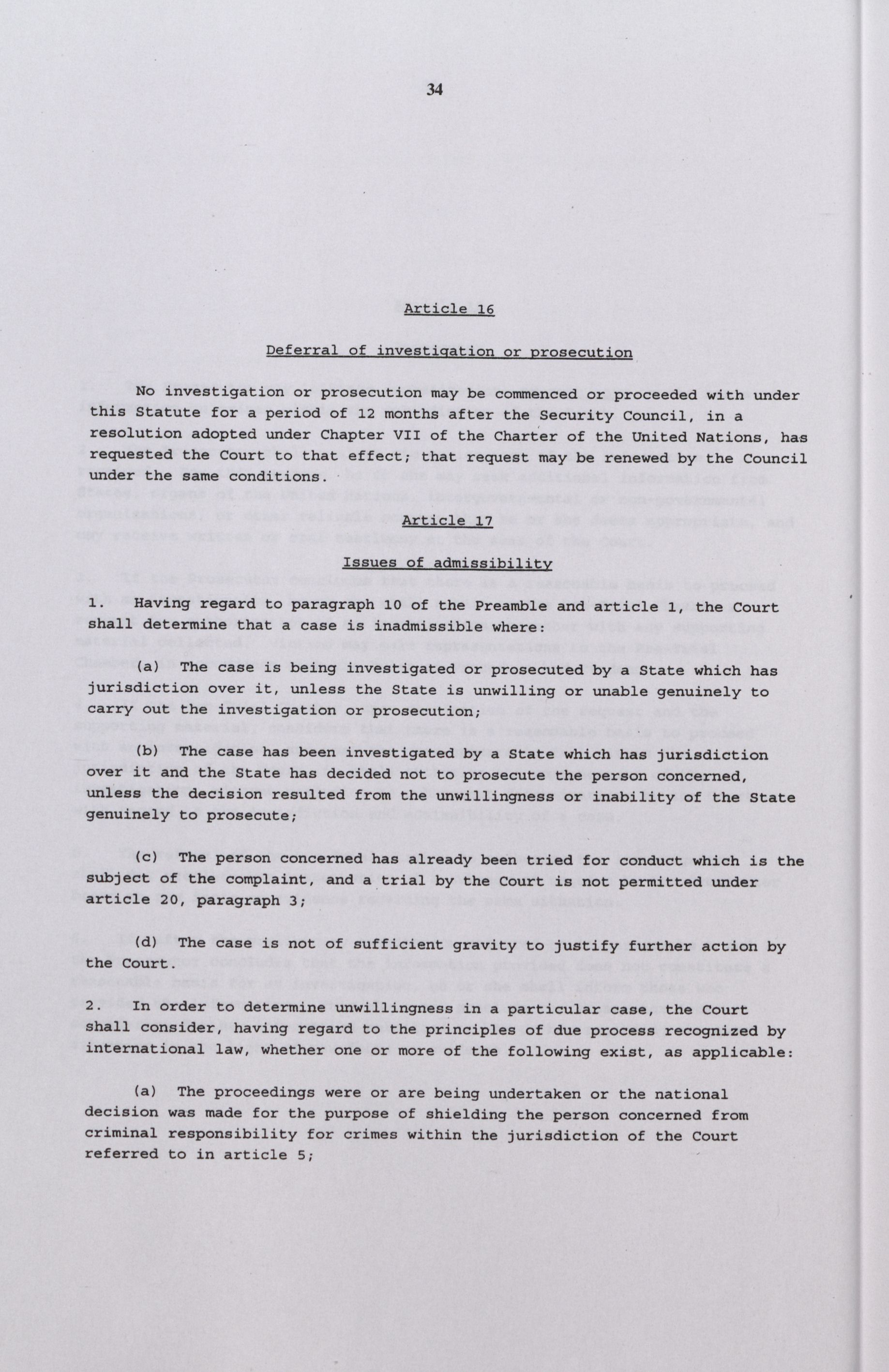 International Courts : Rome Statute of the International Criminal Court =
