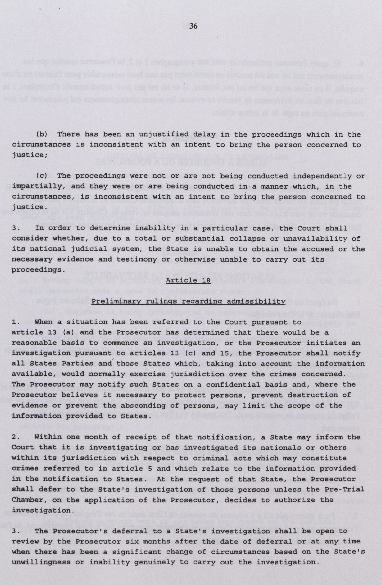 International Courts : Rome Statute of the International Criminal Court = Cours internationales : Statut de Rome de la Cour pénale internationale.