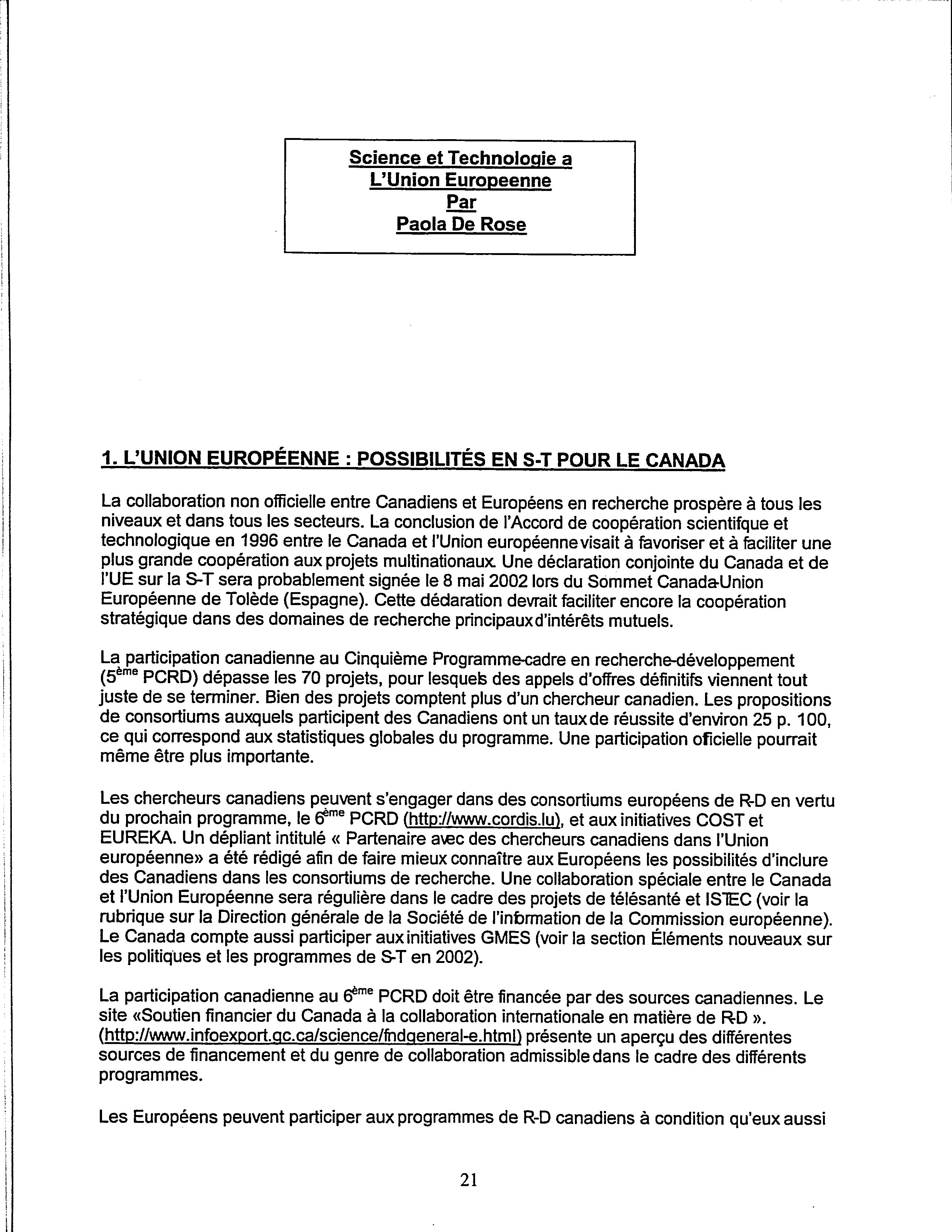 Tournée canadienne 2002 des conseillers en science et technologie.