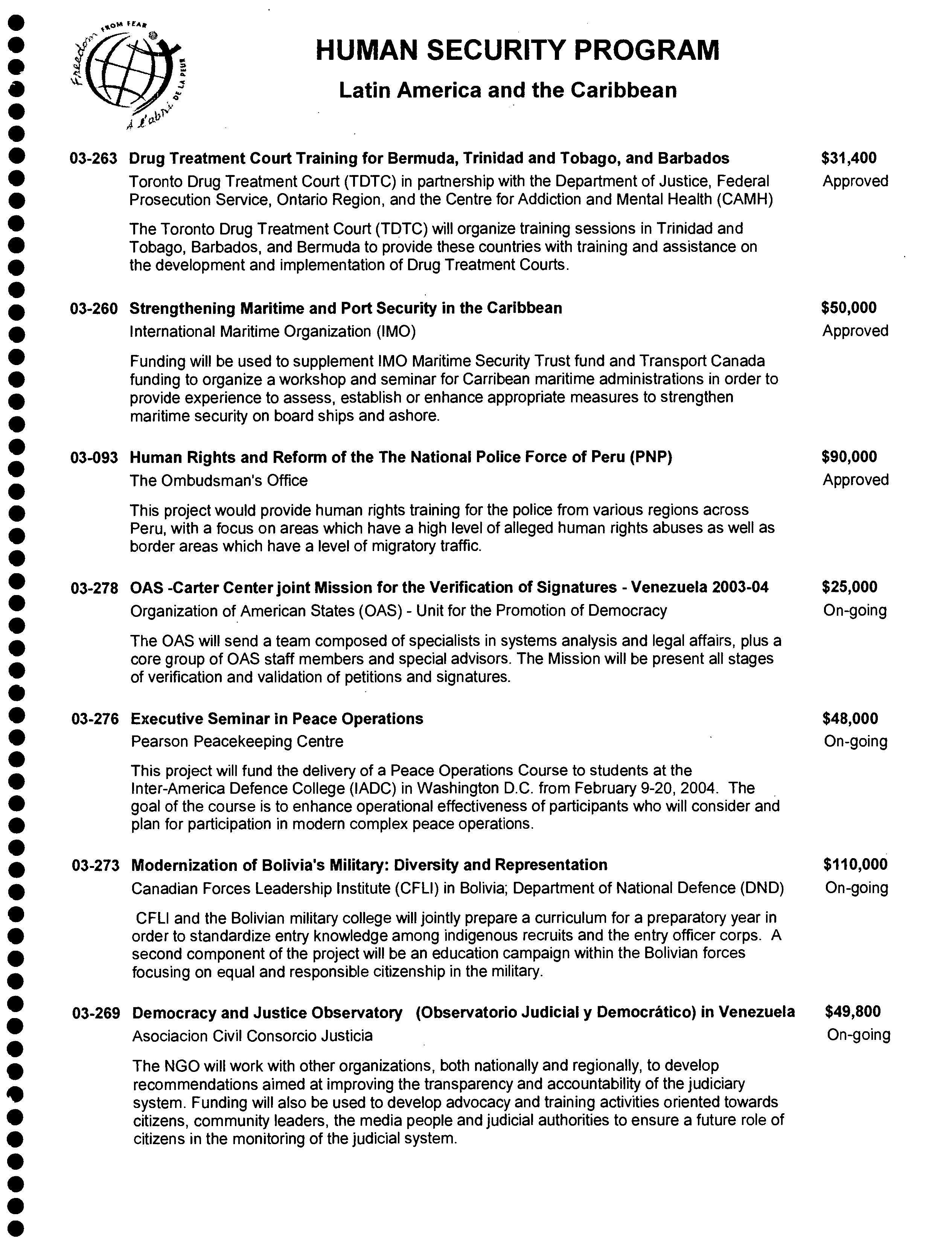 Human security program : fiscal years 2002/2003 and 2004/2005 (as of March 12, 2004) - Adresse bibliographique