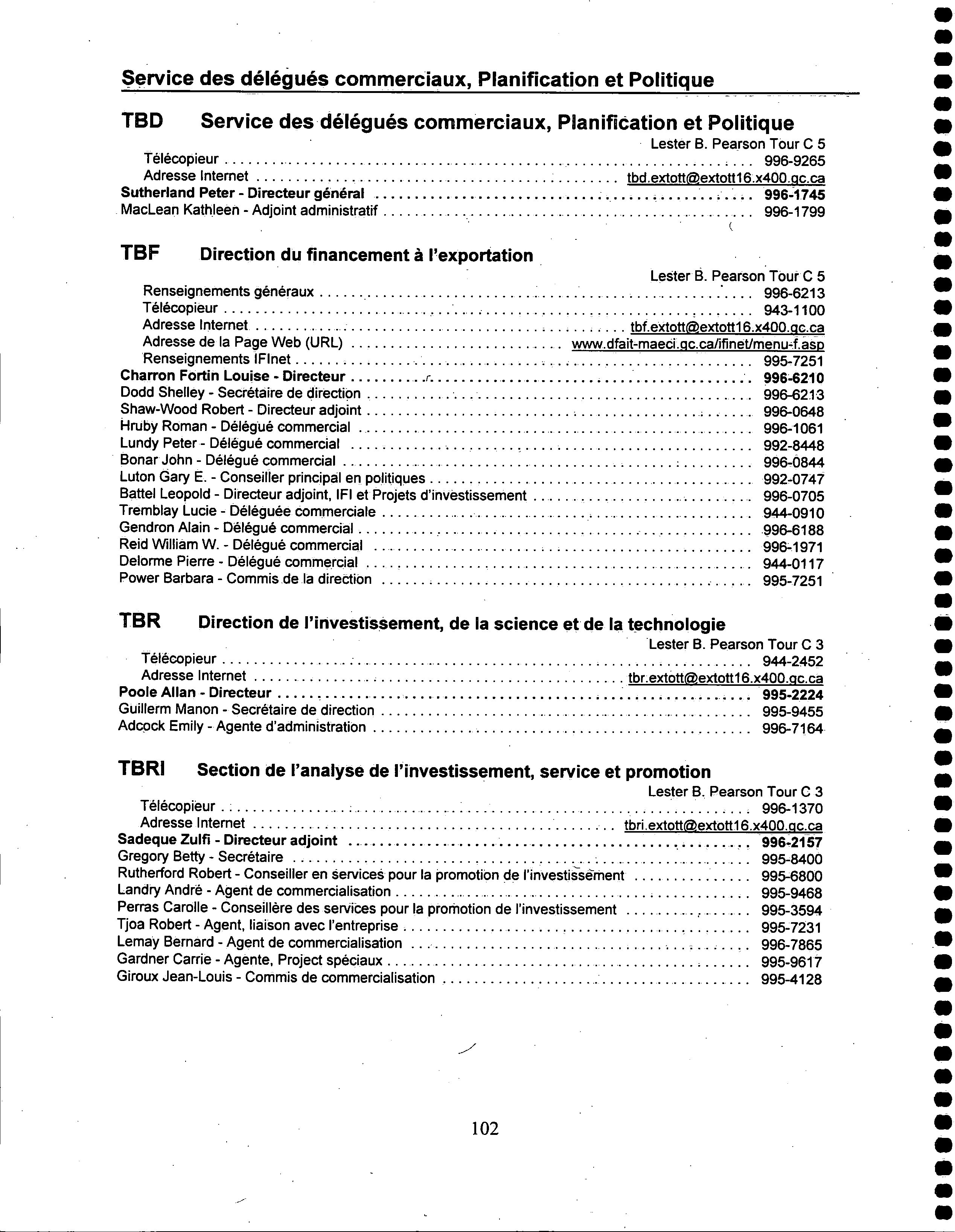 Headquarters directory / Foreign Affairs and International Trade Canada. 1999