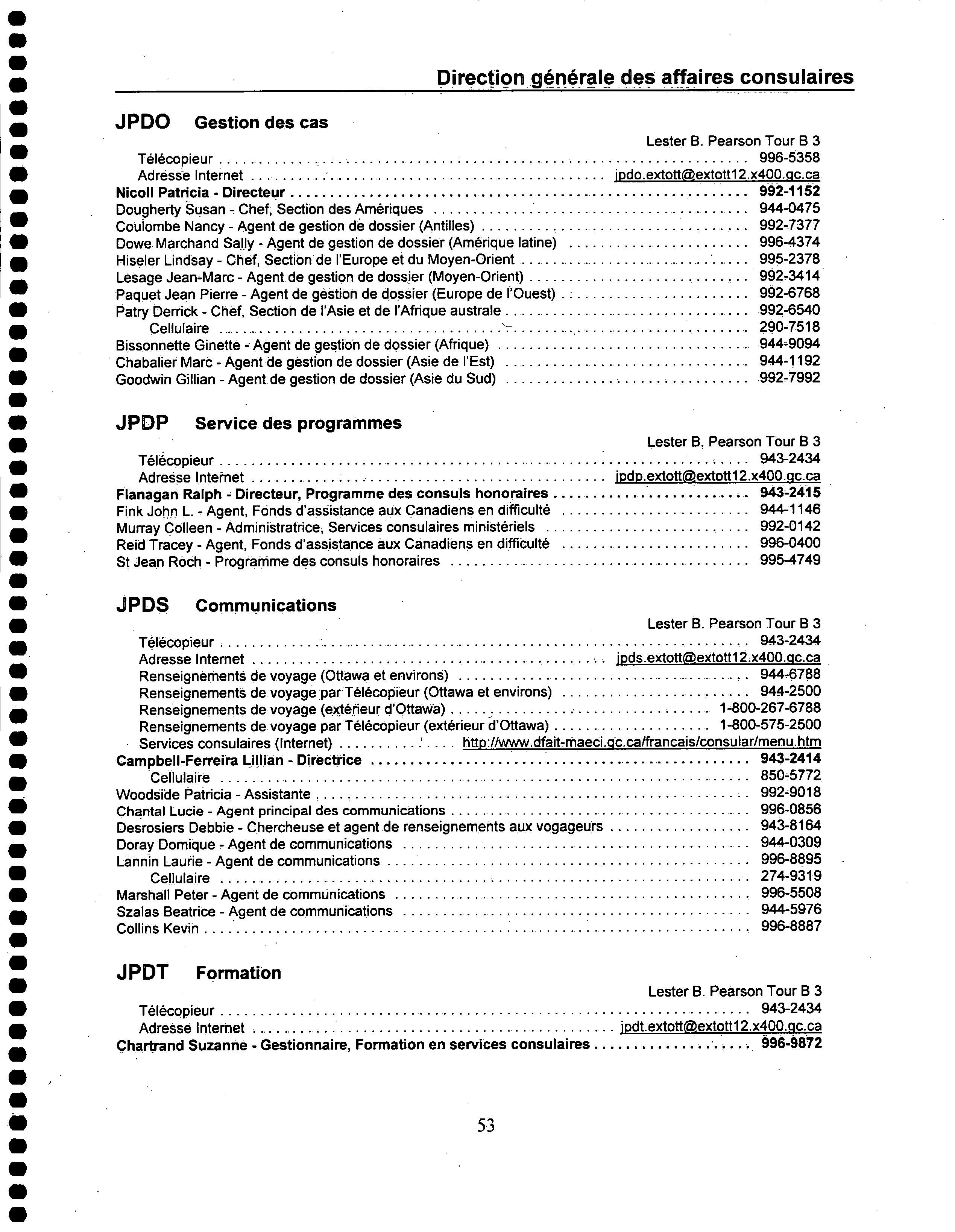 Headquarters directory / Foreign Affairs and International Trade Canada. 1999