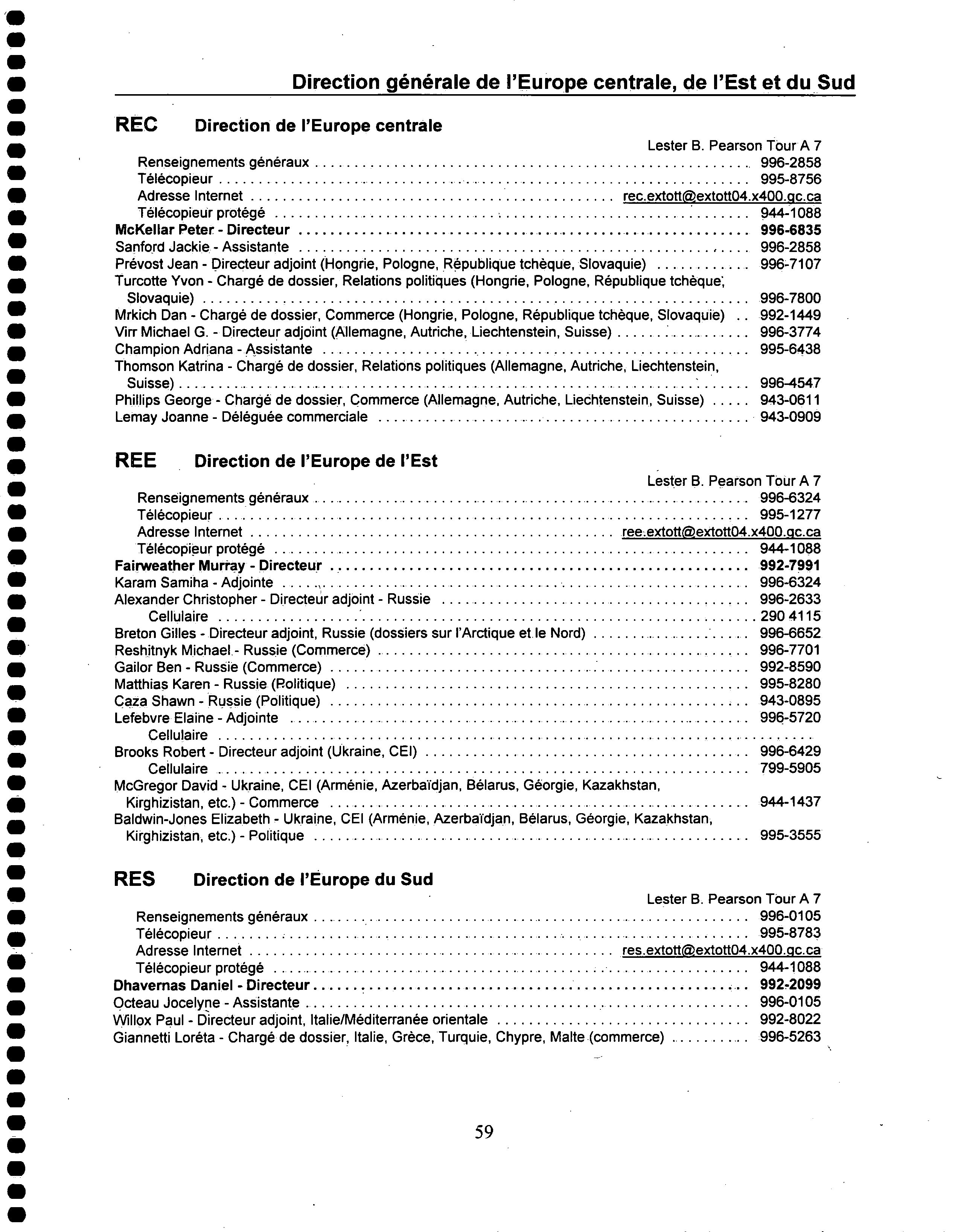 Headquarters directory / Foreign Affairs and International Trade Canada. 1999